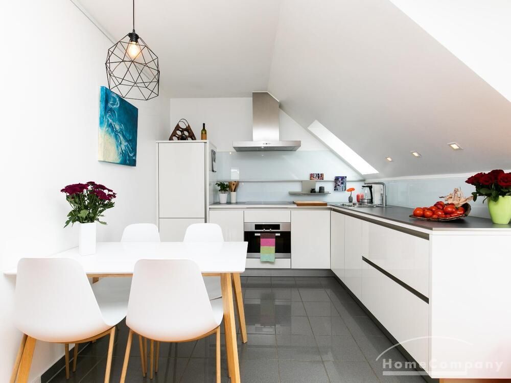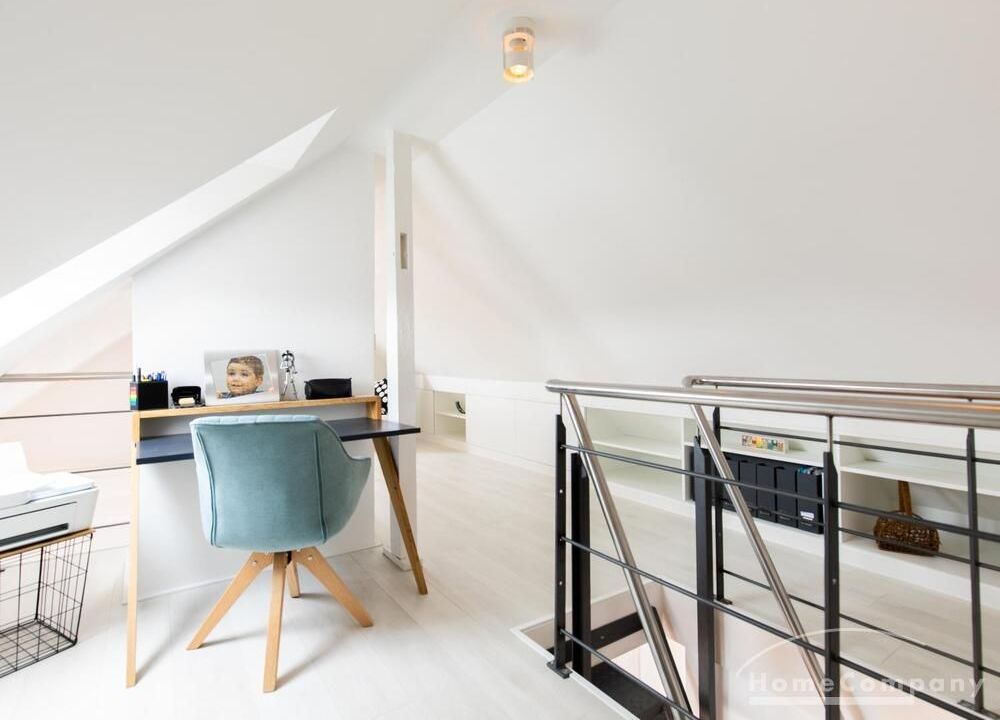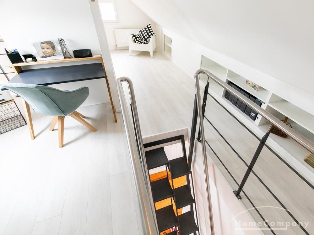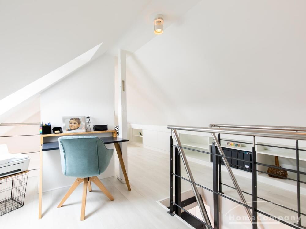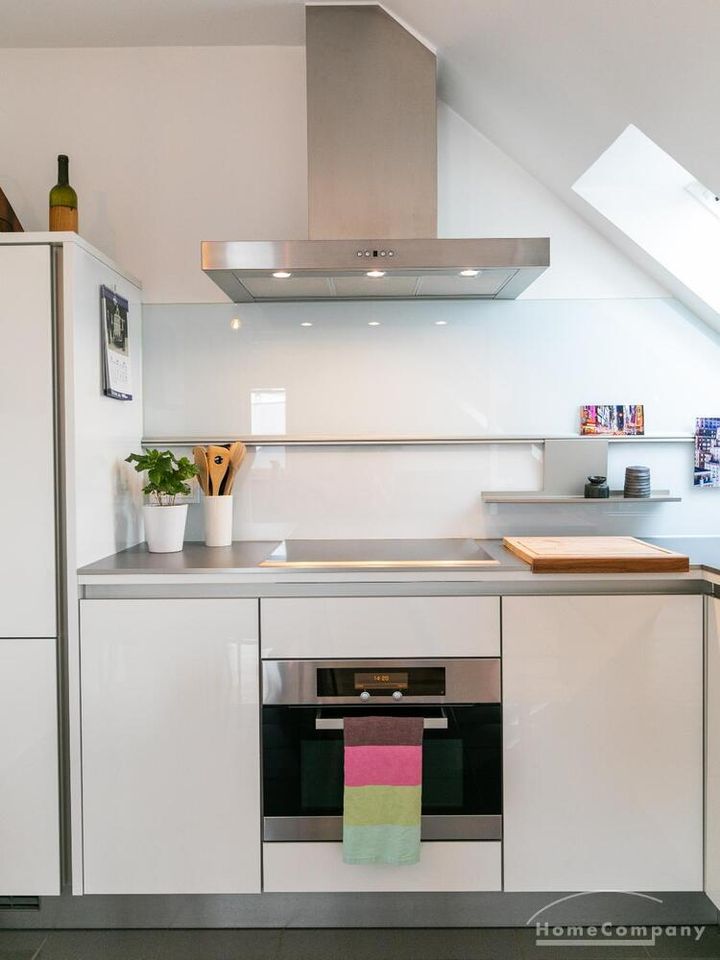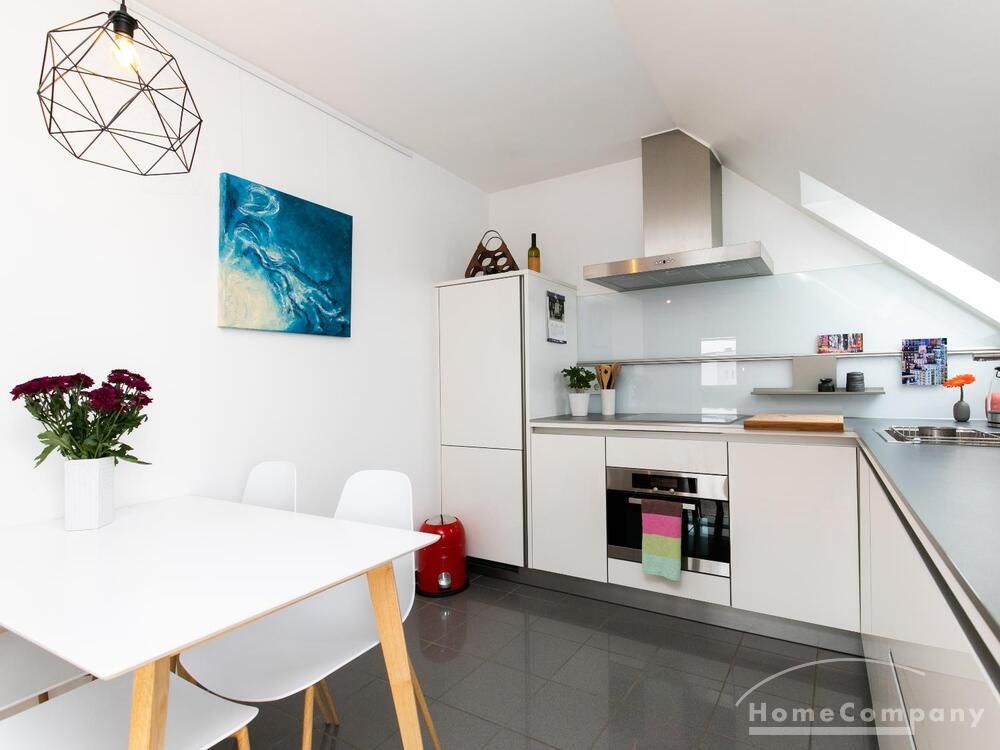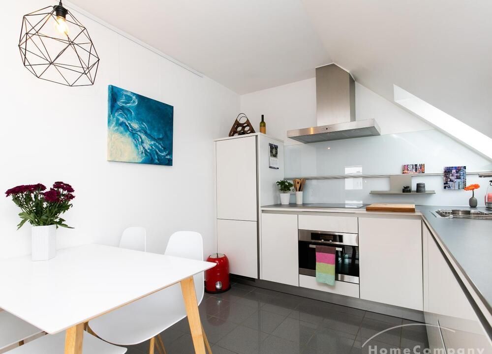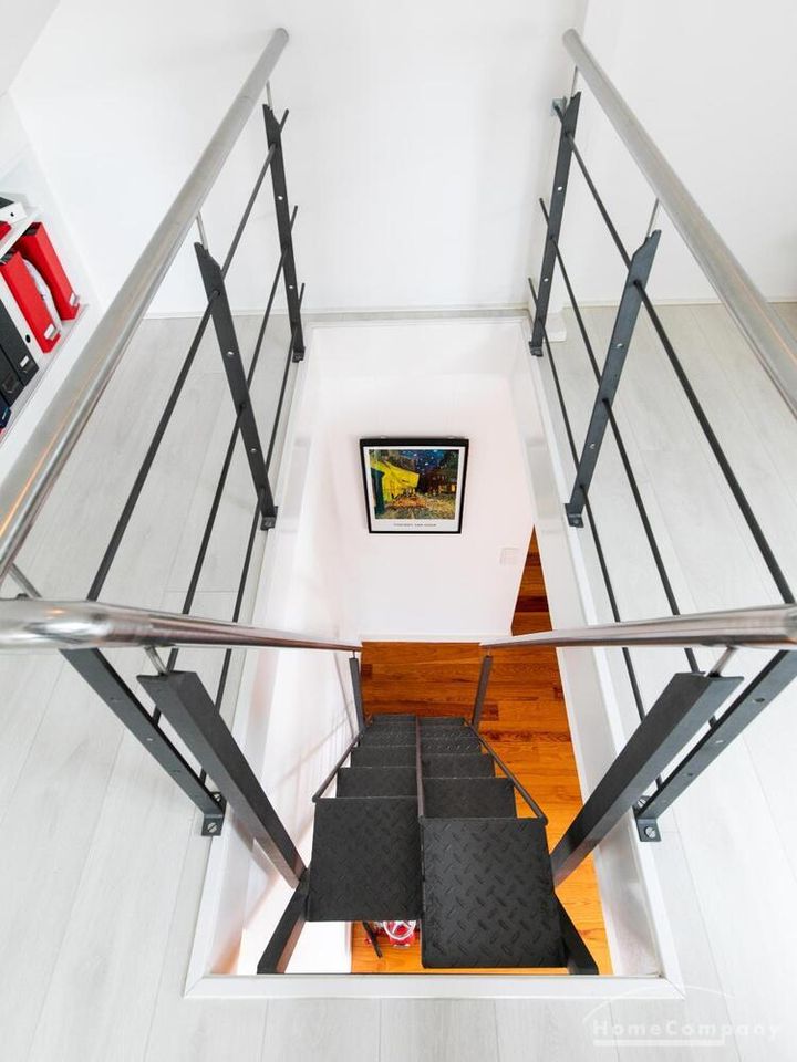 Sehr schöne, helle Wohnung über zwei Ebenen in zentraler Lage in einem in zweiter Reihe sehr ruhig gelegenen Mehrfamilienhaus. Die Wohnung wurde im Jahr 1999 grundlegend modernisiert. Das Wohnzimmer mit Balkon in West-Ausrichtung öffnet sich zur Galerie. Hier befindet sich ein kleiner Arbeitsbereich. Die moderne Einbauküche ist zum Wohnzimmer hin offen. Ein Essbereich für 4 Personen steht zur Verfügung. Das moderne Duschbad ist in hellen Grau/Beigetönen gehalten.