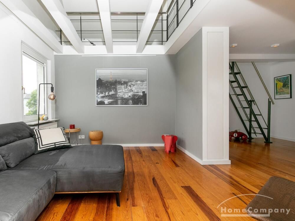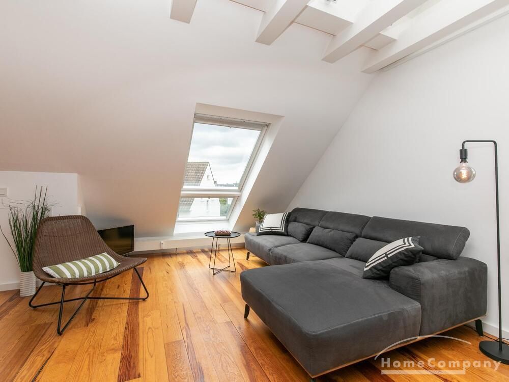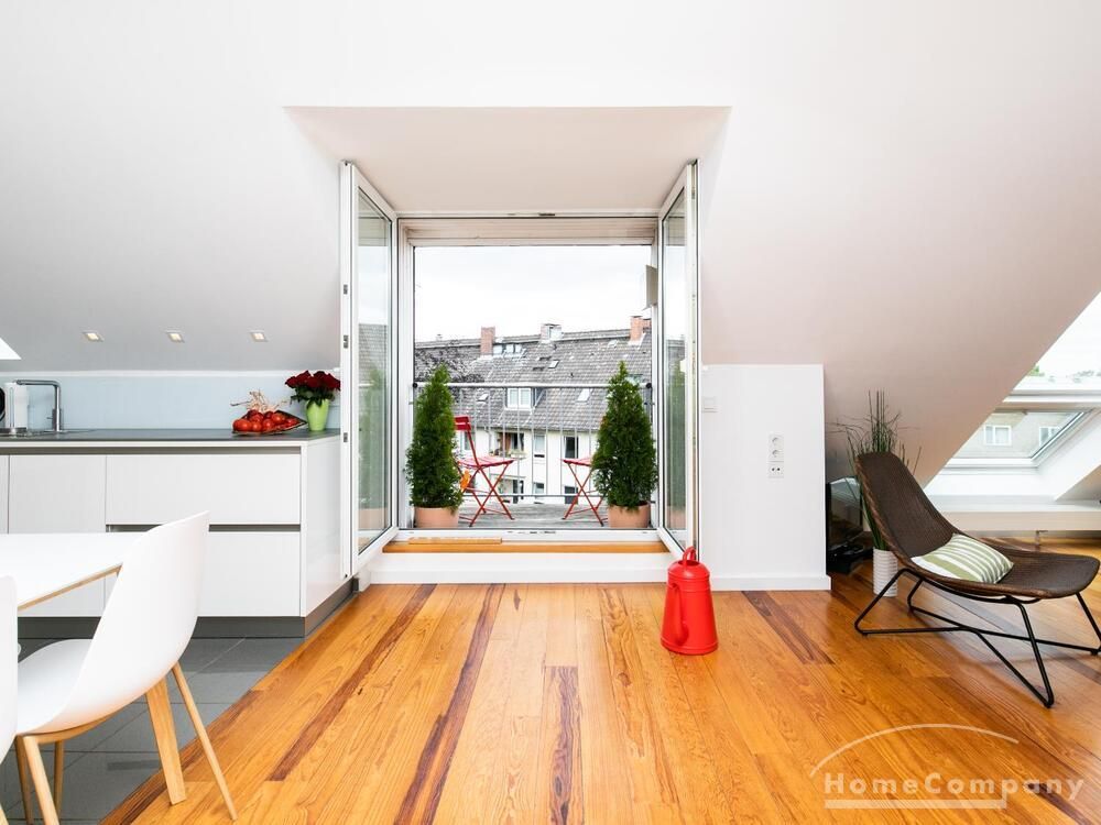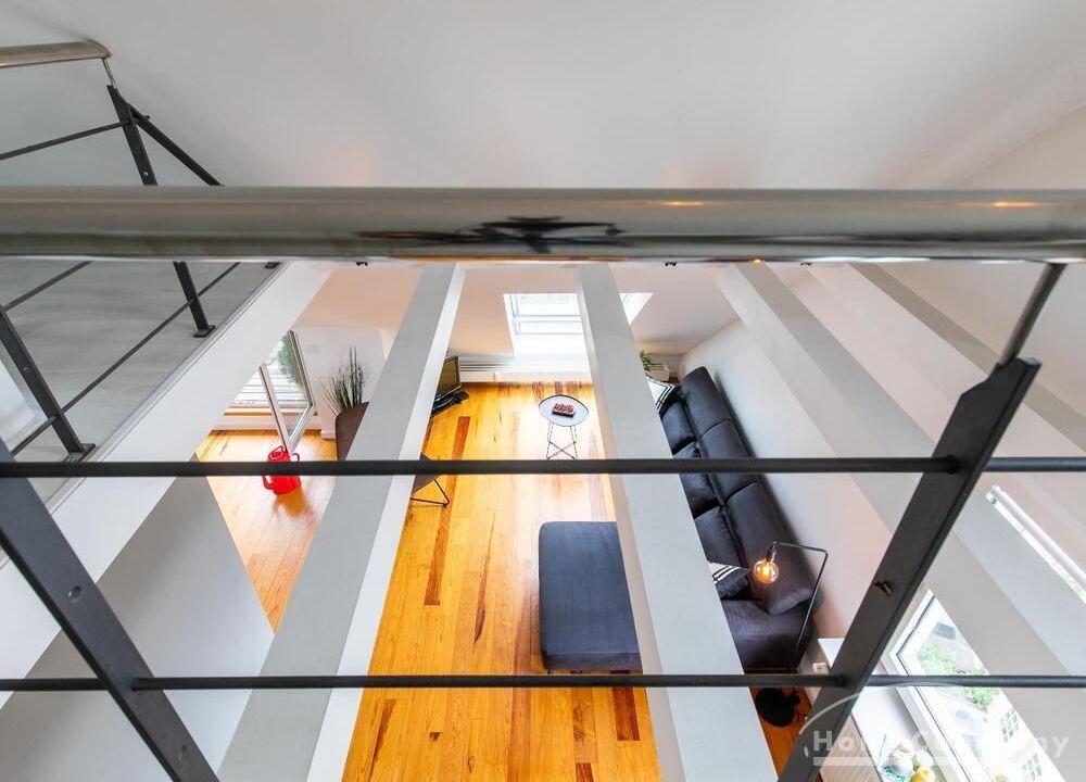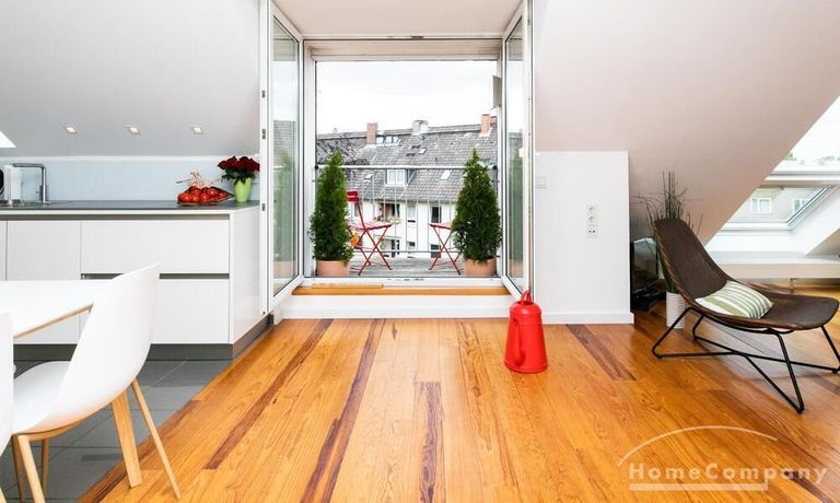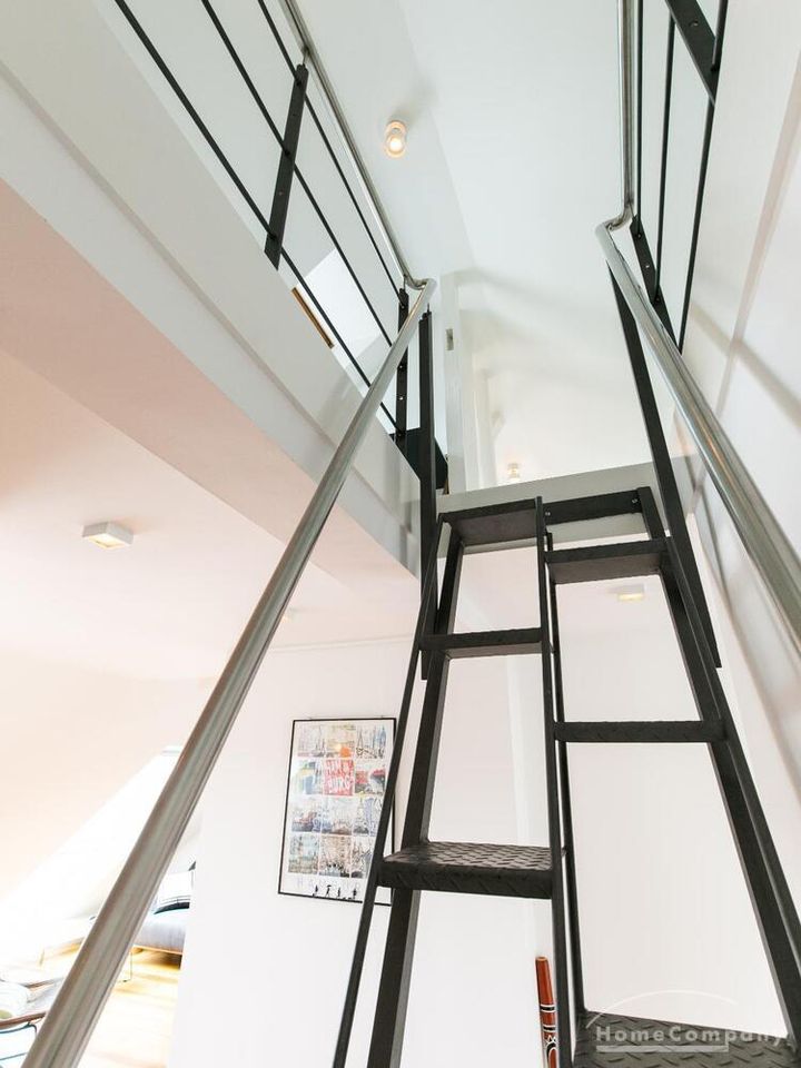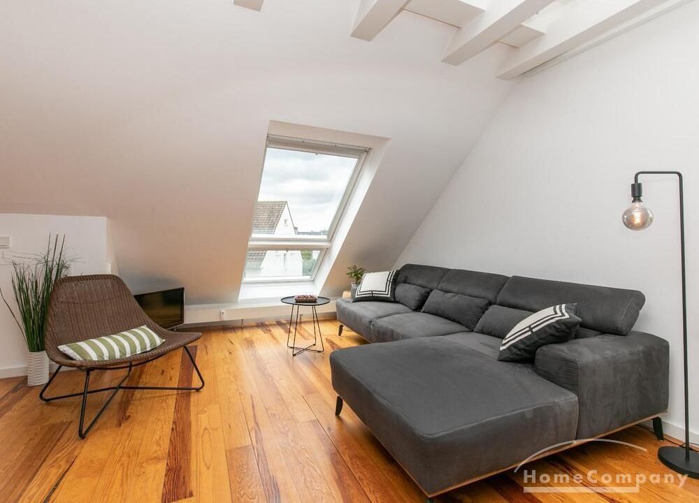 Sehr schöne, helle Wohnung über zwei Ebenen in zentraler Lage in einem in zweiter Reihe sehr ruhig gelegenen Mehrfamilienhaus. Die Wohnung wurde im Jahr 1999 grundlegend modernisiert. Das Wohnzimmer mit Balkon in West-Ausrichtung öffnet sich zur Galerie. Hier befindet sich ein kleiner Arbeitsbereich. Die moderne Einbauküche ist zum Wohnzimmer hin offen. Ein Essbereich für 4 Personen steht zur Verfügung. Das moderne Duschbad ist in hellen Grau/Beigetönen gehalten.