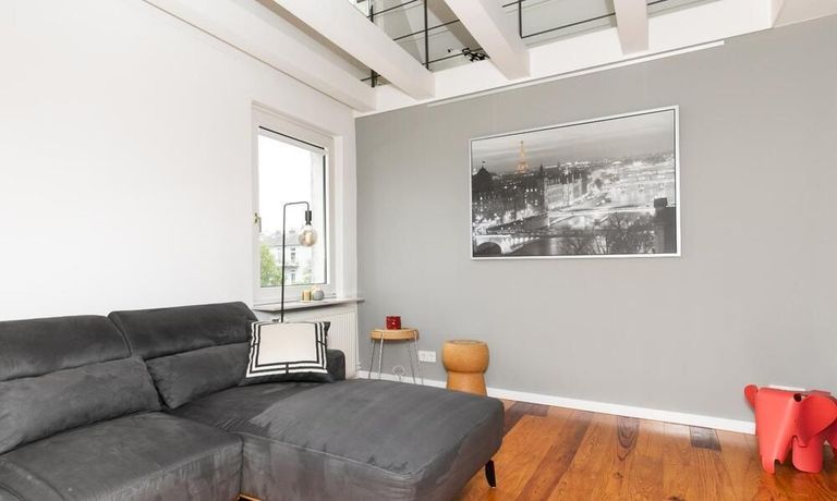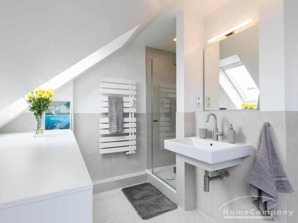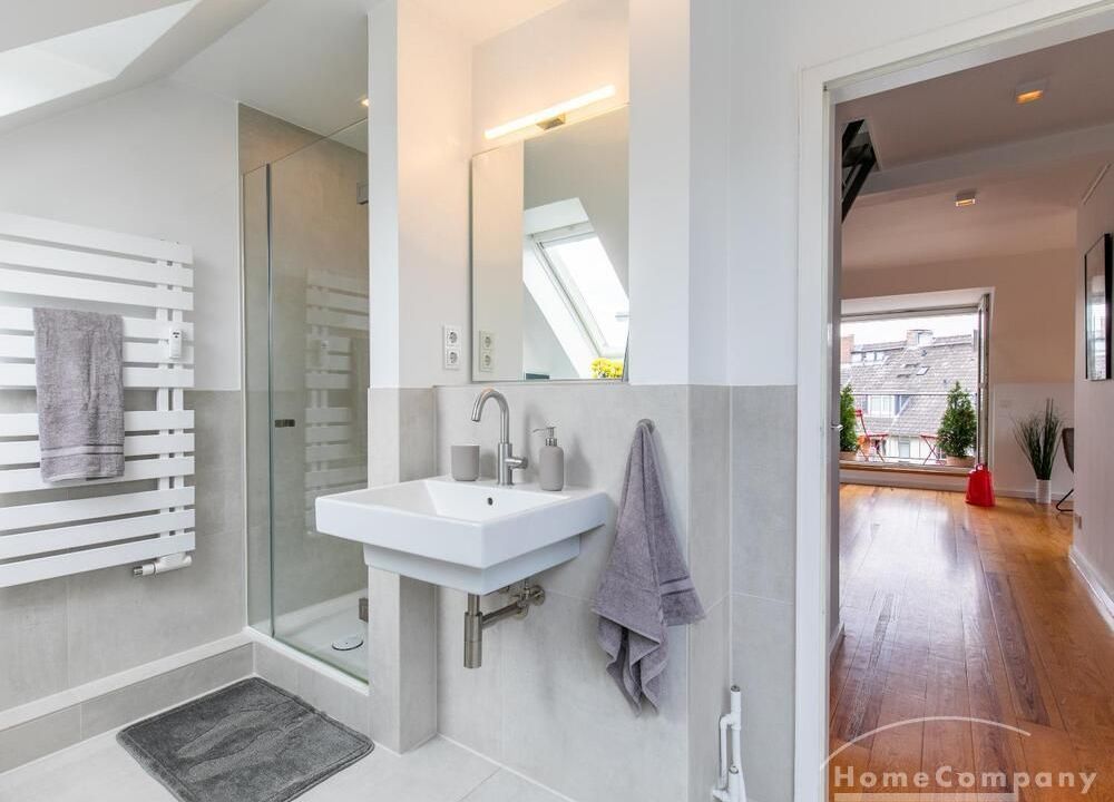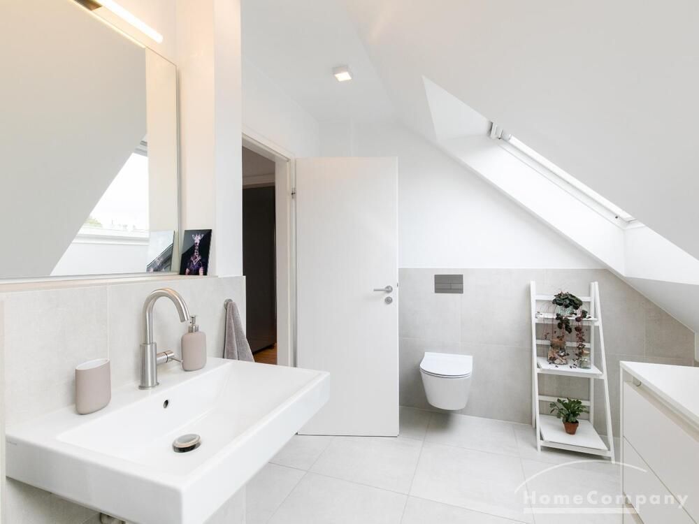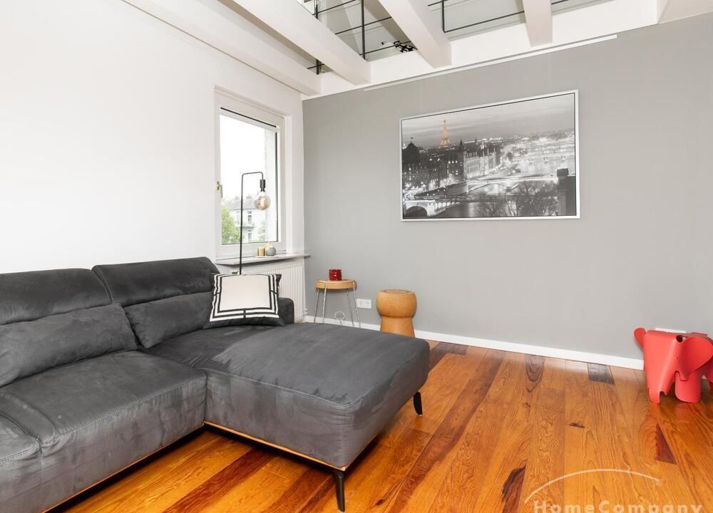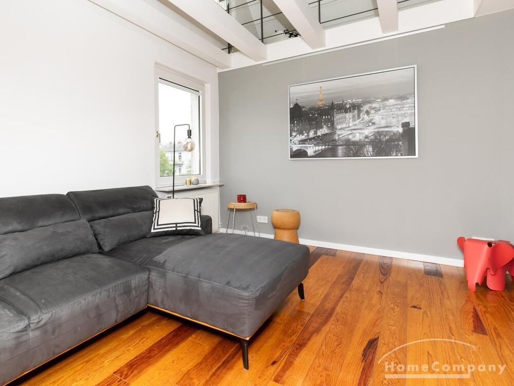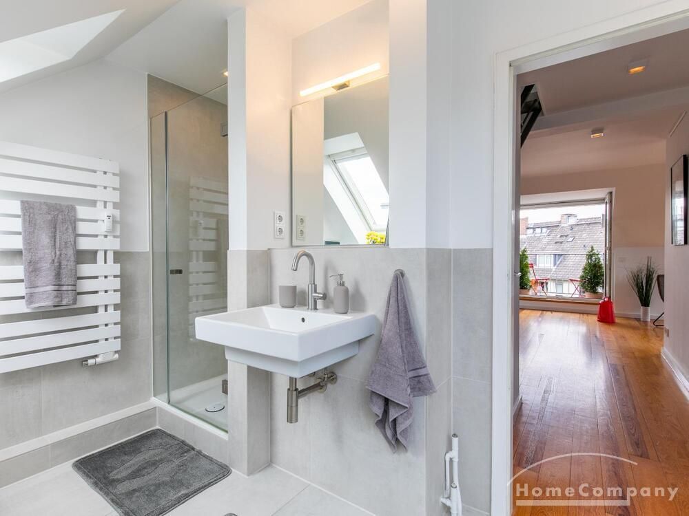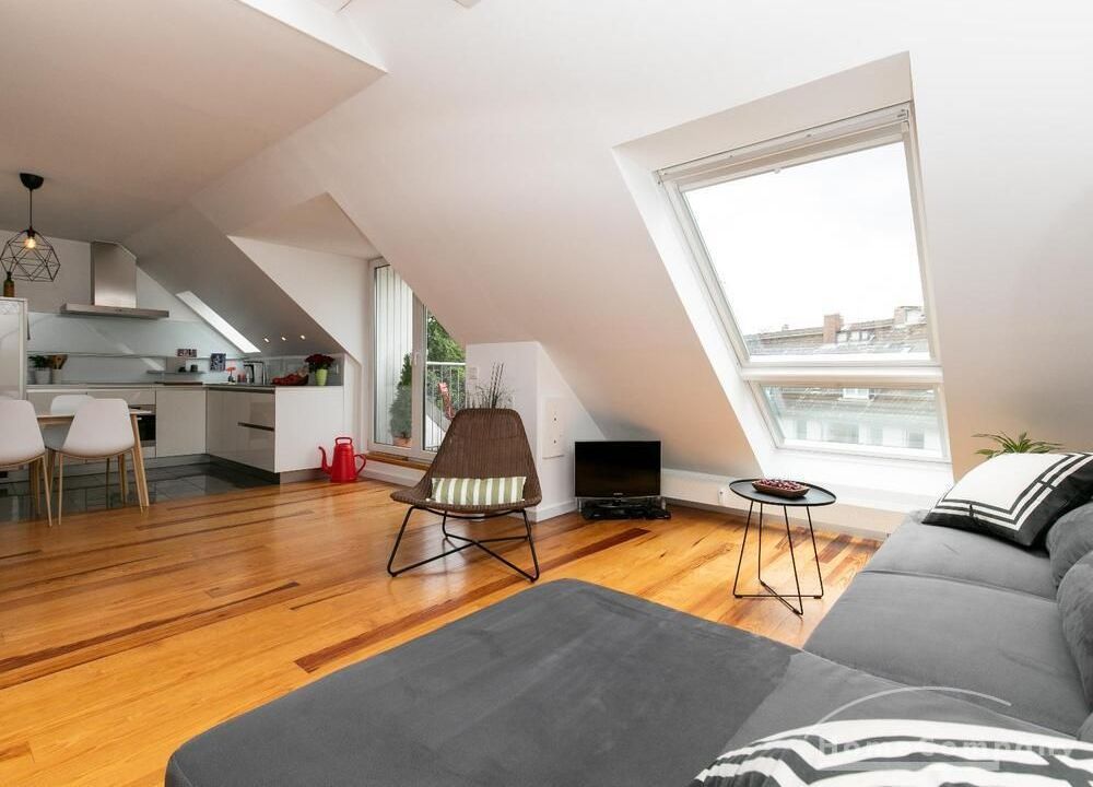 Sehr schöne, helle Wohnung über zwei Ebenen in zentraler Lage in einem in zweiter Reihe sehr ruhig gelegenen Mehrfamilienhaus. Die Wohnung wurde im Jahr 1999 grundlegend modernisiert. Das Wohnzimmer mit Balkon in West-Ausrichtung öffnet sich zur Galerie. Hier befindet sich ein kleiner Arbeitsbereich. Die moderne Einbauküche ist zum Wohnzimmer hin offen. Ein Essbereich für 4 Personen steht zur Verfügung. Das moderne Duschbad ist in hellen Grau/Beigetönen gehalten.