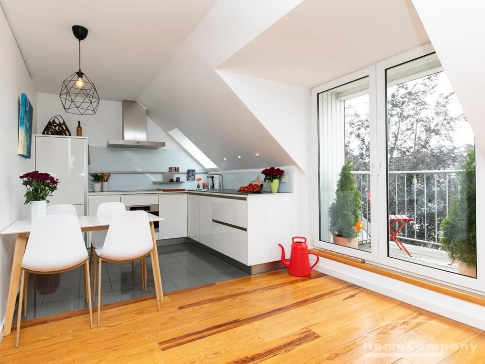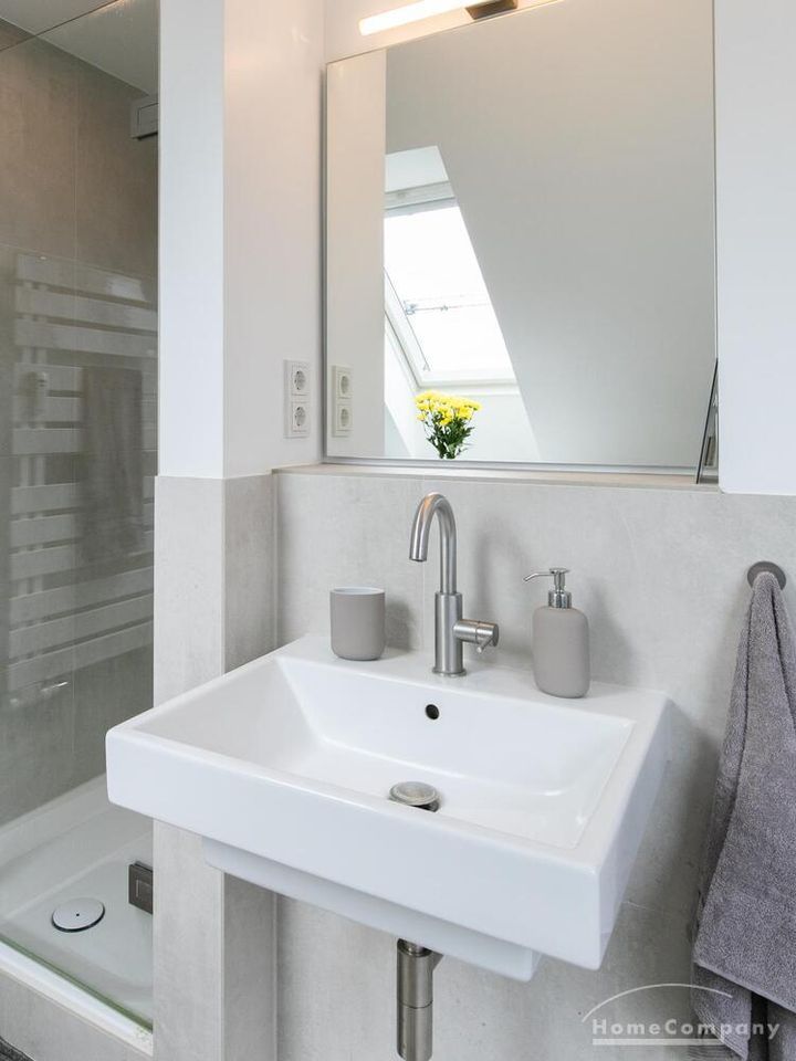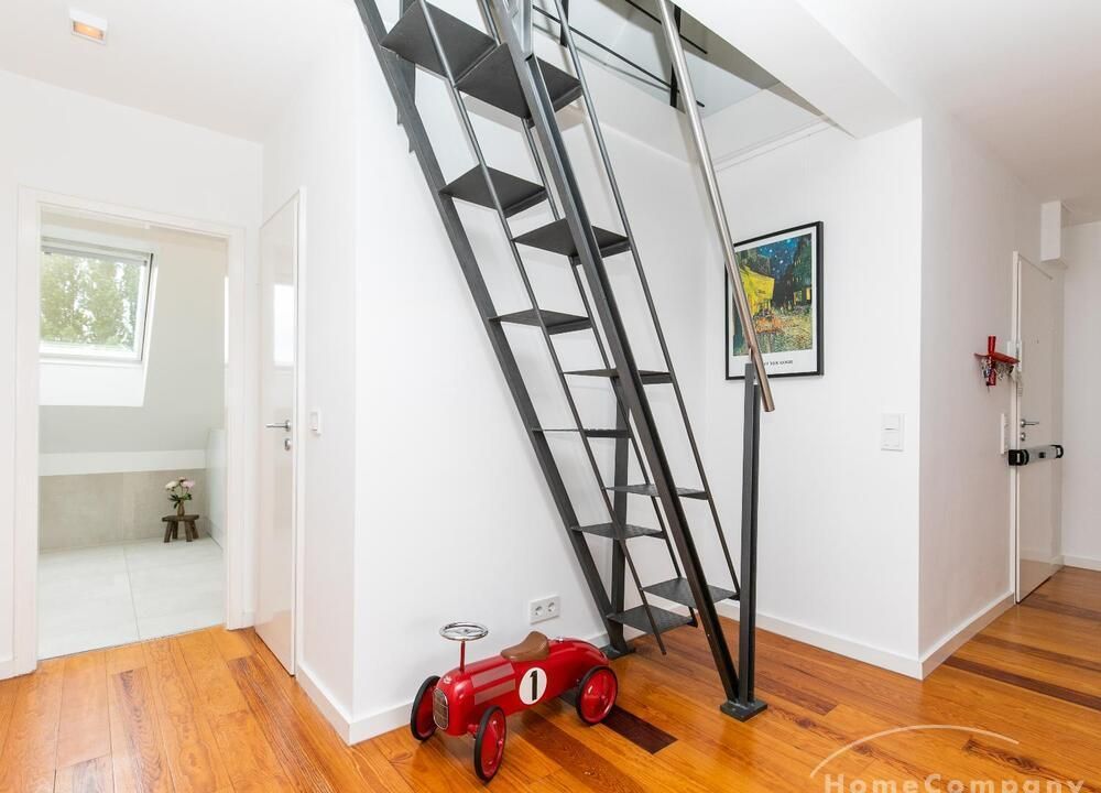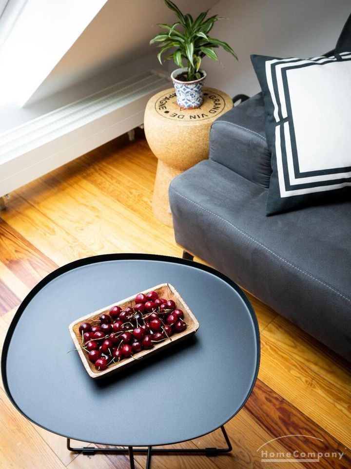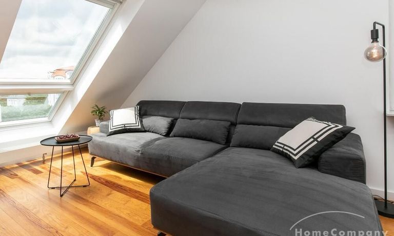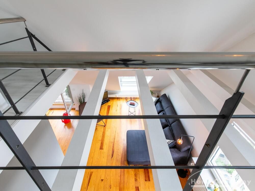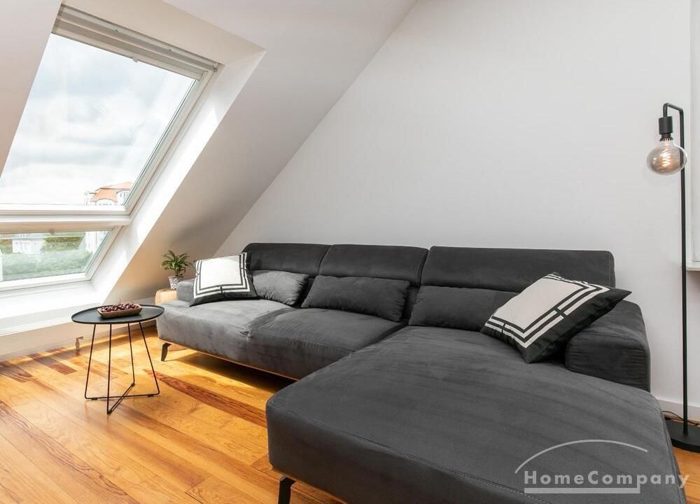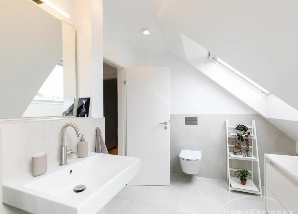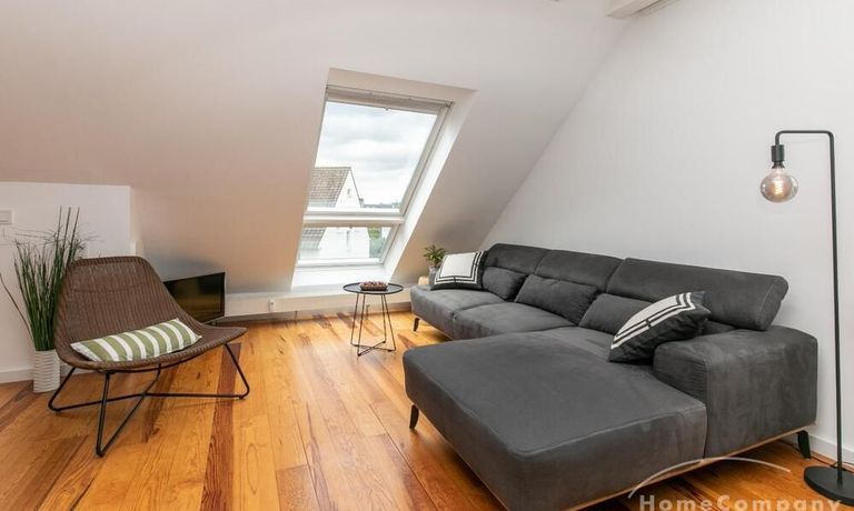 Sehr schöne, helle Wohnung über zwei Ebenen in zentraler Lage in einem in zweiter Reihe sehr ruhig gelegenen Mehrfamilienhaus. Die Wohnung wurde im Jahr 1999 grundlegend modernisiert. Das Wohnzimmer mit Balkon in West-Ausrichtung öffnet sich zur Galerie. Hier befindet sich ein kleiner Arbeitsbereich. Die moderne Einbauküche ist zum Wohnzimmer hin offen. Ein Essbereich für 4 Personen steht zur Verfügung. Das moderne Duschbad ist in hellen Grau/Beigetönen gehalten.