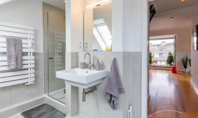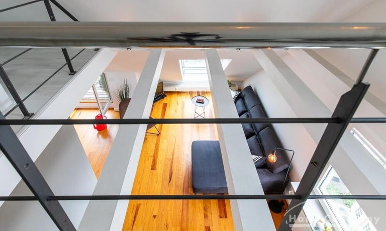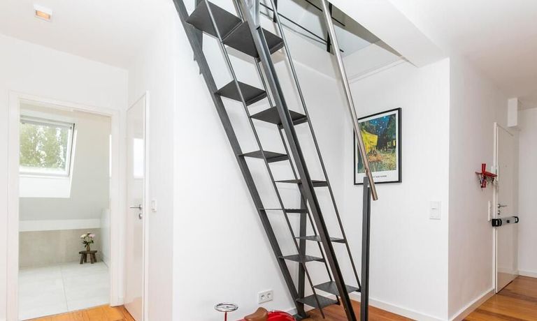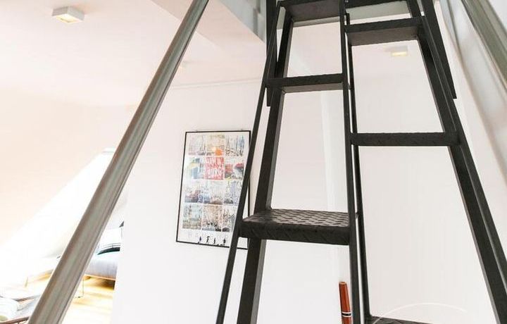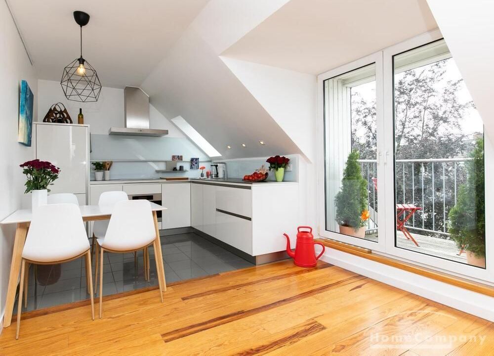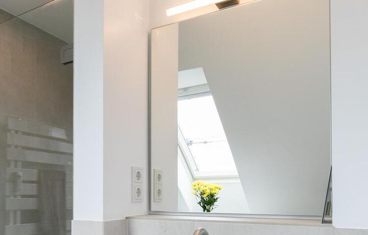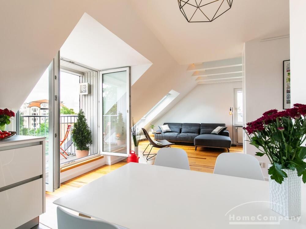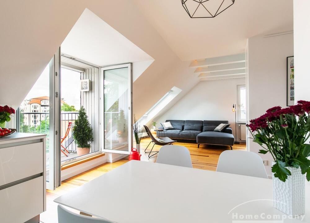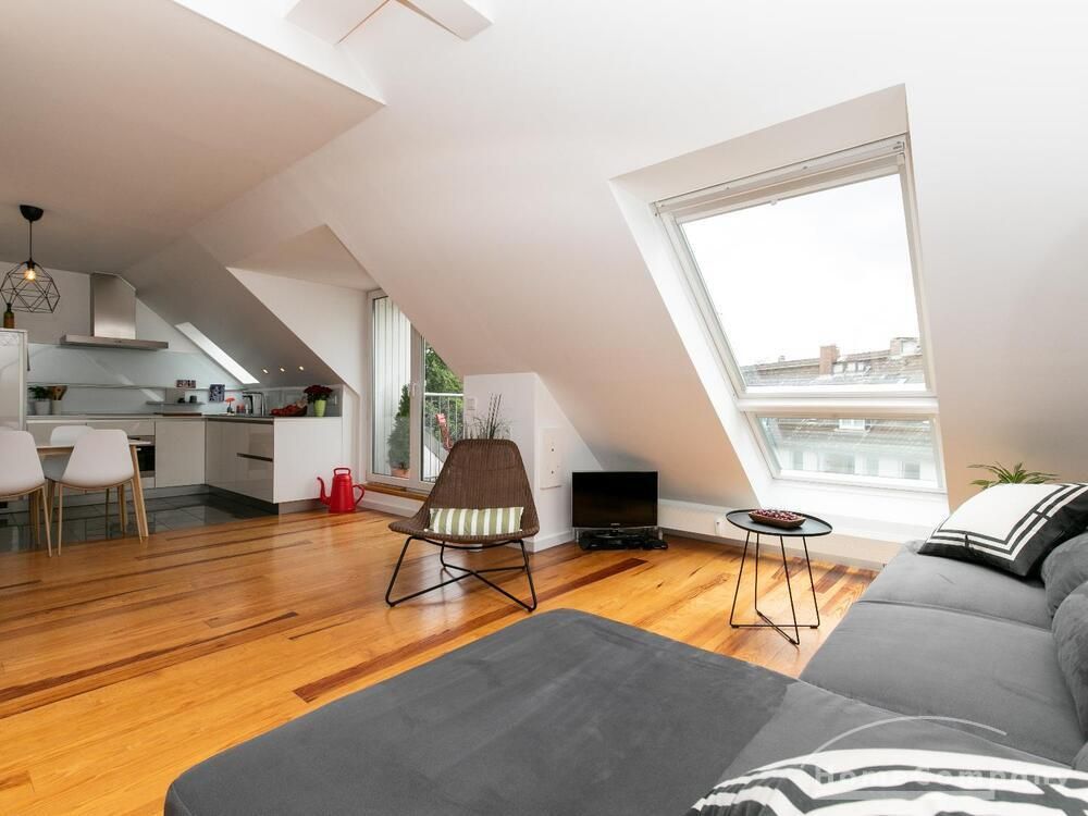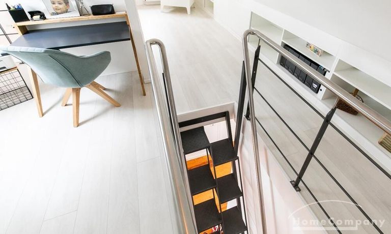 Sehr schöne, helle Wohnung über zwei Ebenen in zentraler Lage in einem in zweiter Reihe sehr ruhig gelegenen Mehrfamilienhaus. Die Wohnung wurde im Jahr 1999 grundlegend modernisiert. Das Wohnzimmer mit Balkon in West-Ausrichtung öffnet sich zur Galerie. Hier befindet sich ein kleiner Arbeitsbereich. Die moderne Einbauküche ist zum Wohnzimmer hin offen. Ein Essbereich für 4 Personen steht zur Verfügung. Das moderne Duschbad ist in hellen Grau/Beigetönen gehalten.