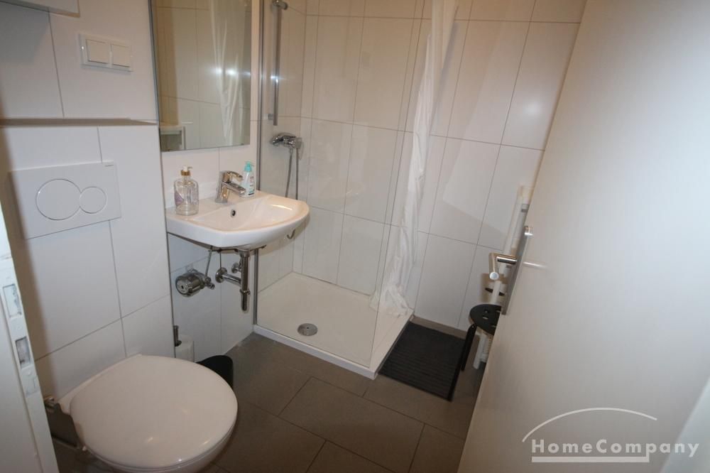 + Badezimmer mit Dusche, Toilette, Waschbecken;