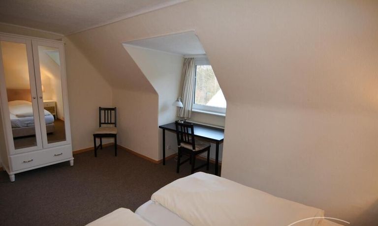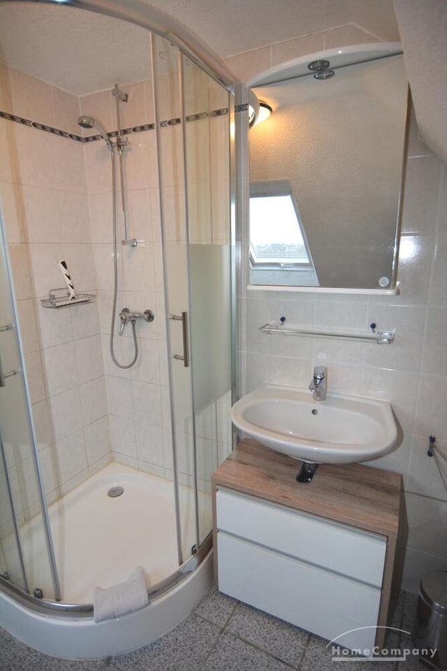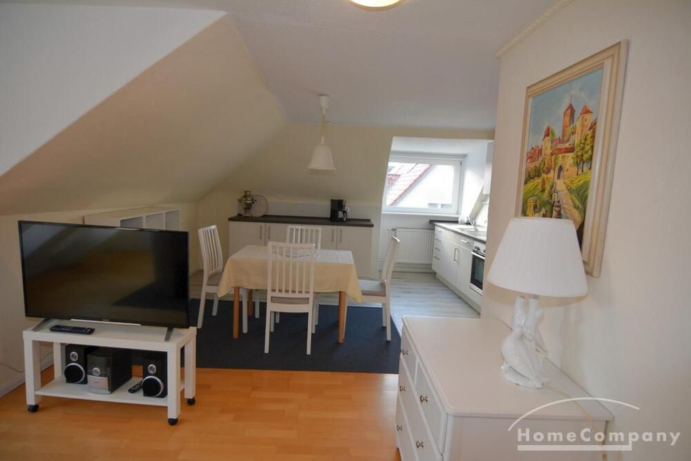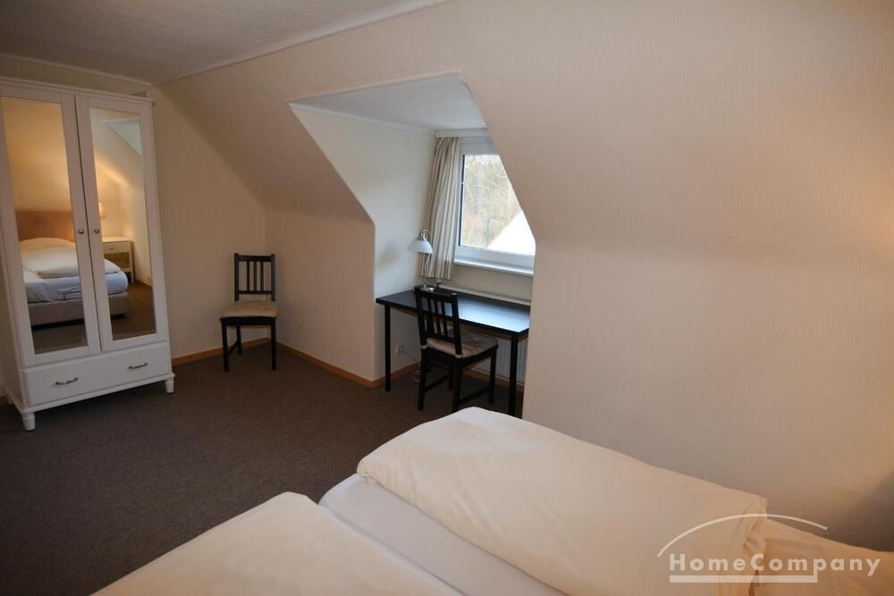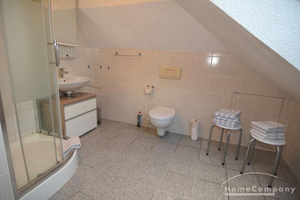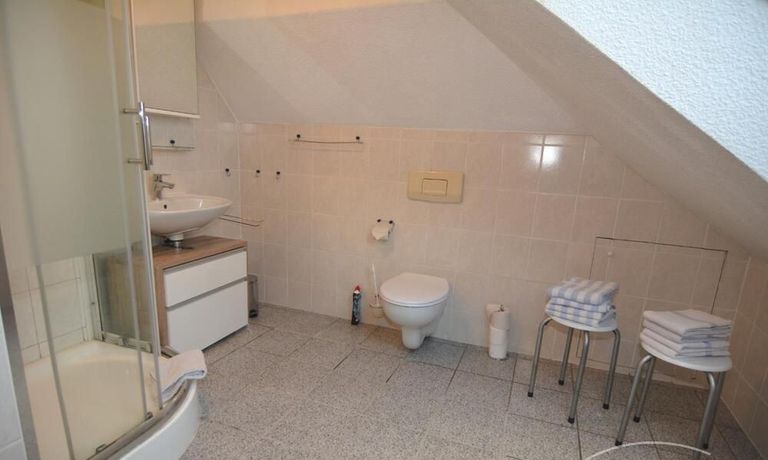 Die ca. 56m² große 3-Zimmerwohnung befindet sich im gesamten Dachgeschoß. Ein Schlafraum verfügt über zwei bequeme Boxspringbetten mit verstellbaren Kopfteil (je 90 x 200), der andere über 2 Einzelbetten (90 x 200). Die Küchenzeile im Wohn-/Eßbereich verfügt über Spüle, Umluft-Herd mit Cerankochfeld, Mikrowelle, Kühlschrank mit Gefrierfach und einen Geschirrspüler.
