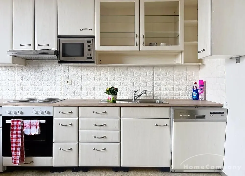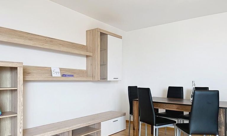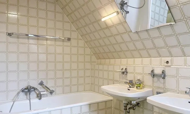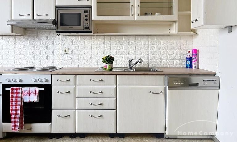 Die Wohnung verfügt über eine separate Einbauküche, zwei Bäder (eines mit Fenster) sowie eine Möblierung mit u. a. Sofas, Betten und Essbereich. Ein neu installierter Aufzug führt bequem bis in die Tiefgarage. Gemeinschaftliche Waschmaschinen und Trockner stehen dort zur Verfügung.