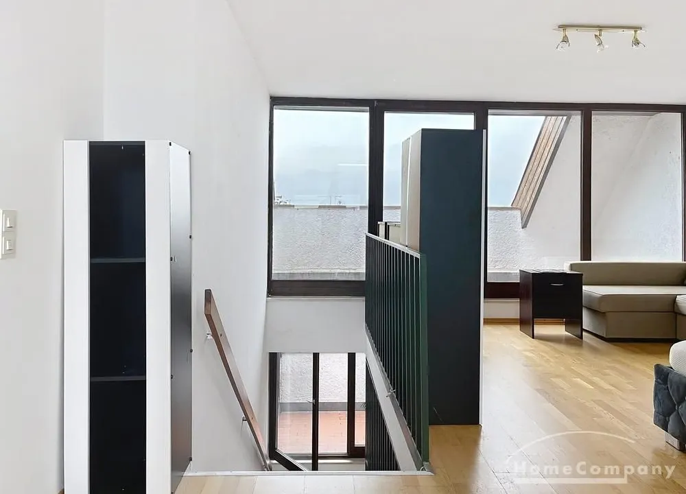 Diese außergewöhnliche Maisonettewohnung befindet sich in den obersten beiden Etagen eines gepflegten Wohnhauses (Baujahr 1983). Die Wohnung überzeugt durch 2 Dachterrassen, 2 Balkonen und viel Licht. Bei klarer Sicht sogar bis zu den Alpen.
