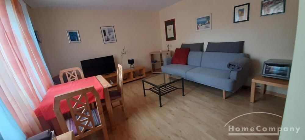 Ein gemütlicher Essbereich ist in das Wohnzimmer integriert. Das Schlafzimmer ist mit einem komfortablen Doppelbett ausgestattet. Die integrierte Single-Einbauküche verfügt über alle notwendigen Geräte und Utensilien. Das Tageslicht Bad ist mit einer Wanne ausgestattet.