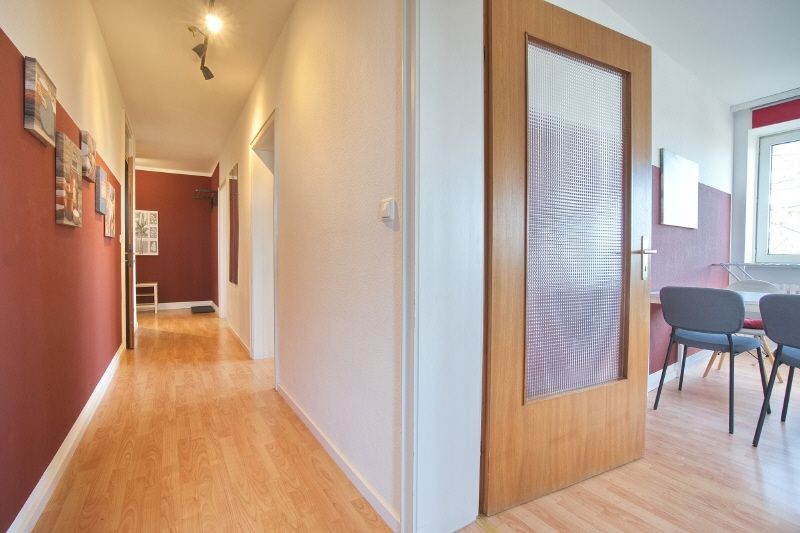 Helle und ansprechende Wohnung im 5. OG eines gepflegten Hochhauses mit Weitblick und Blick auf die umliegend stehenden Bäume, Aufzug, Nichtraucher-Angebot. Ruhige und attraktive Wohnlage in einer Seitenstraße, Spaziermöglichkeiten bieten sich direkt vom Haus aus, die nette City von Buer ist zu Fuß in ca. 12 Minuten zu erreichen. Der Nordring und die A 52 sowie die A 2 sind in wenigen Minuten Fahrzeit erreicht. Die Miete beinhaltet bereits die Betriebs- und Heizkosten, Warmwasser und Strom für bis zu zwei Personen sowie die Kosten für den Internetzugang. Bei einer Vermietung an drei Personen wird die Miete um € 150 erhöht.
