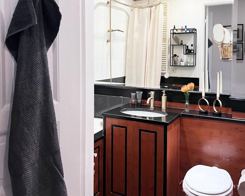 Hohe Fenster, ein durchgehender dunkler Vinylboden sowie liebevoll restaurierte Stilelemente aus der Gründerzeit verleihen der Wohnung ein großzügiges und elegantes Wohngefühl. Der Wohn- und Essbereich ist klassisch verbunden und kann bei Bedarf durch eine Doppelflügeltür getrennt werden. Ein Daybed im Wohnbereich ergänzt das Raumangebot.