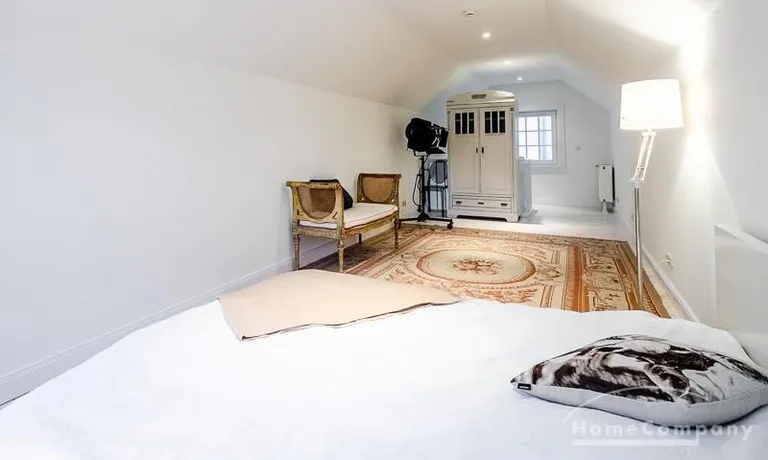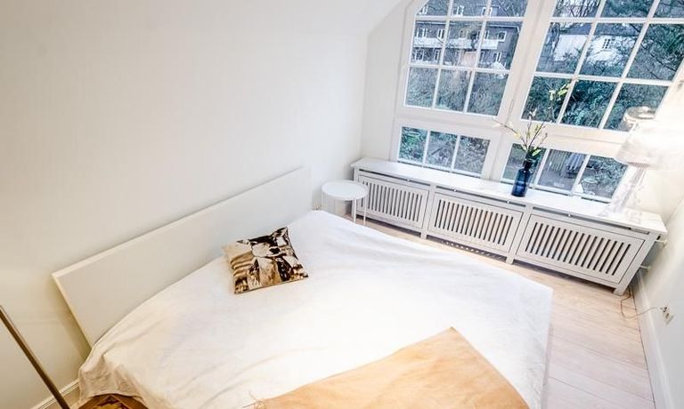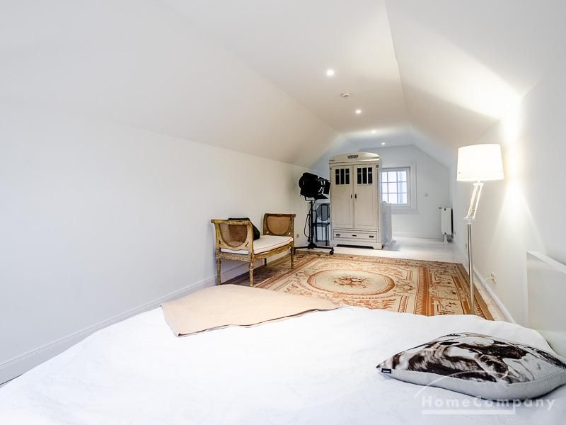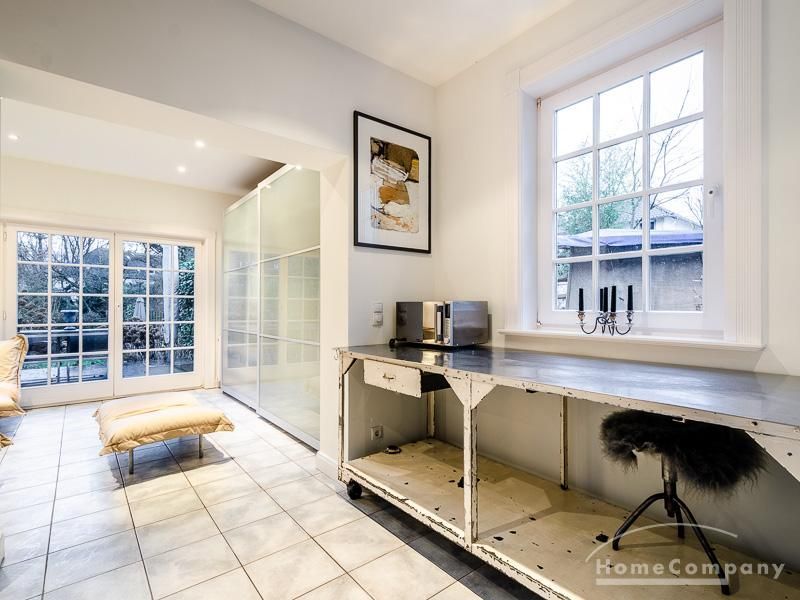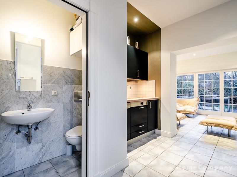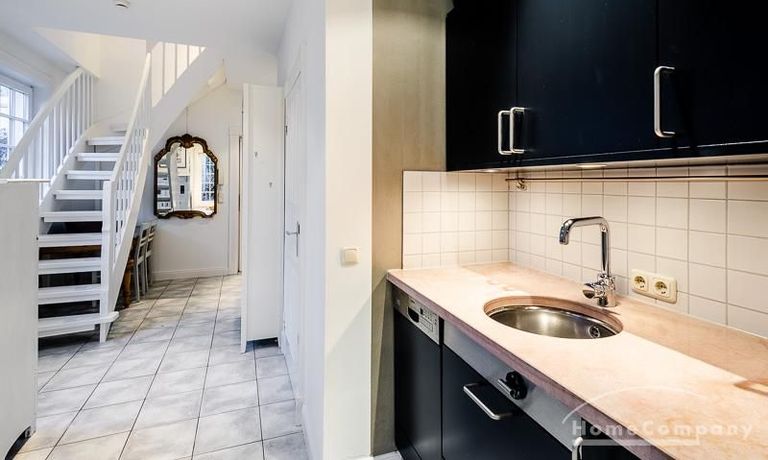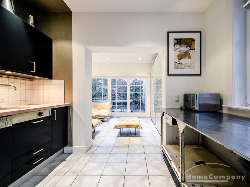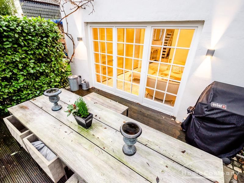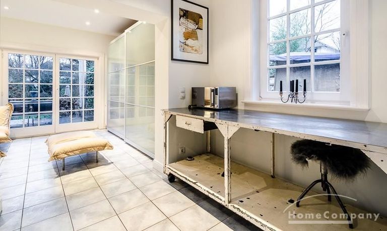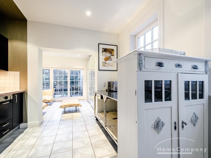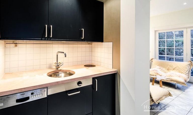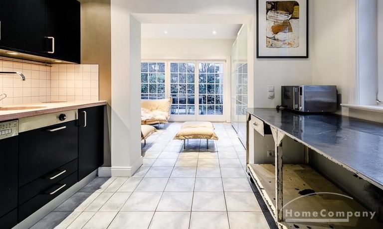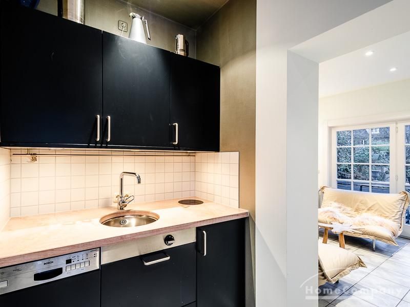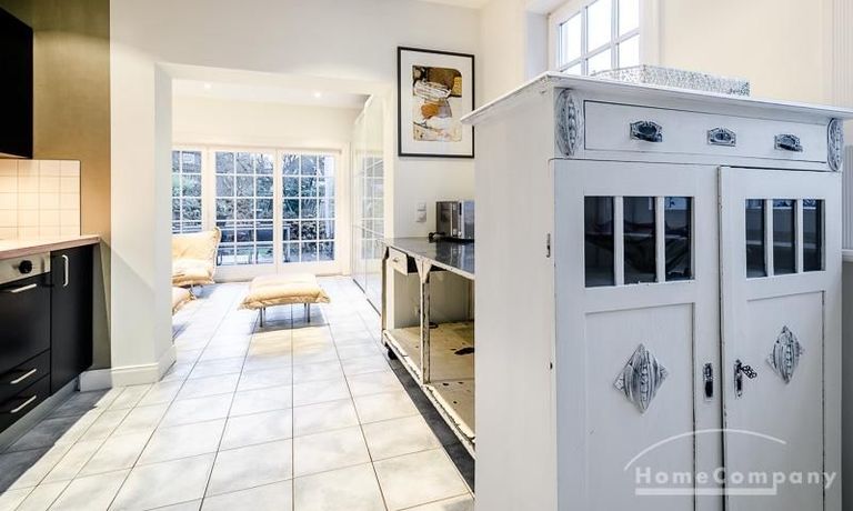 Kleines Hinterhofgebäude (Remise) aus der Jahrhundertwende. Das Objekt ist ein außergewöhnliches Schmuckstück und eignet sich für maximal 2 Personen. Das Haus verfügt im Erdgeschoss über eine sehr komfortable Fußbodenheizung und hat ein modernes Ambiente. Die schwarze Bulthaup Küche verfügt über eine Kochplatte, Mikrowelle mit integriertem Backofen und Geschirrspülmaschine. Zentral gelegen, nur 5 Autominuten zum Flughafen und dennoch hört man keinen Fluglärm. Es befinden sich diverse Einkaufsmöglichkeiten in fußläufiger Entfernung, sowie Ärzte, eine Reinigung, Restaurants etc. Es gibt ein Fahrrad, welches der Mieter mit nutzen darf, ebenso darf der Garten mitbenutzt werden. Zusätzlich gibt es direkt am Haus eine eigene 20 Quadratmeter große Terrasse. Eine Waschmaschine im Keller des benachbarten Hauses kann genutzt werden. Optionaler Reinigungsservice sowie Wäscheservice für Bettwäsche und Handtücher kann gebucht werden.