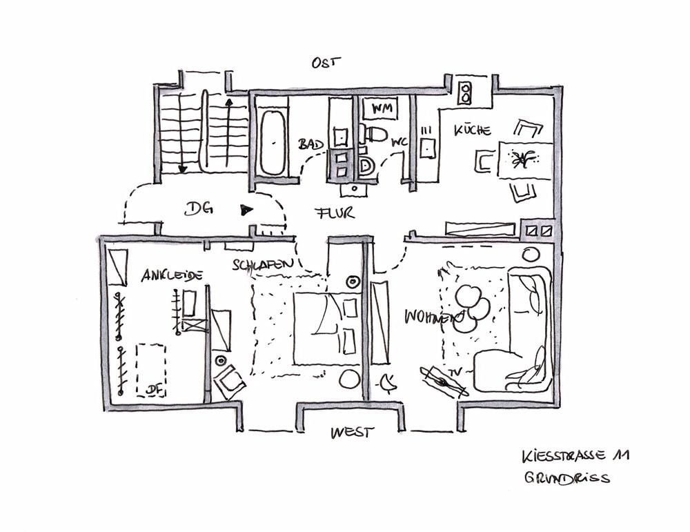 Helle zwei Zimmer Dachwohnung im Herzen von Bockenheim.