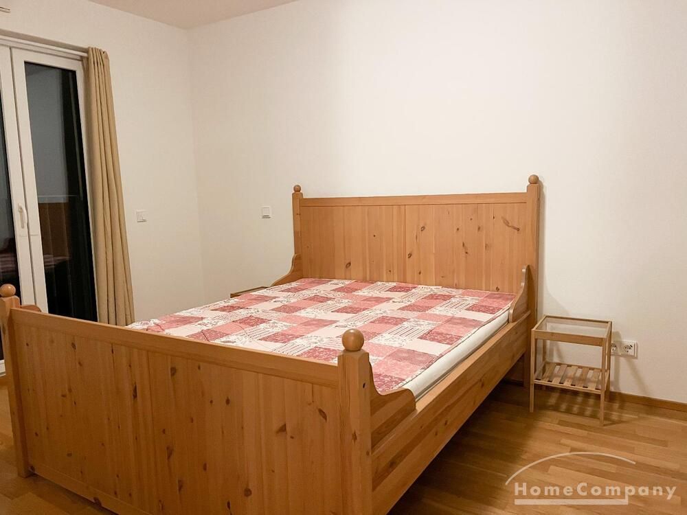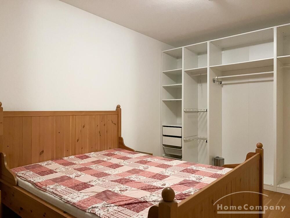 Schlafen: Bett 1,60 m und großer Kleiderschrank
