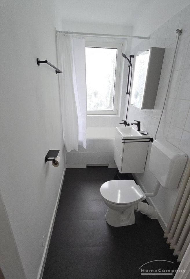 Bad: kleines, modernes Wannenbad mit Tageslicht