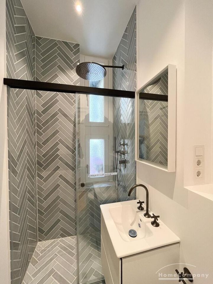Bad: Tageslicht Duschbad mit marrokanischen Fliesen, hochwertigen Dornbracht Armaturen und extra großer Regendusche und Fußbodenheizung.