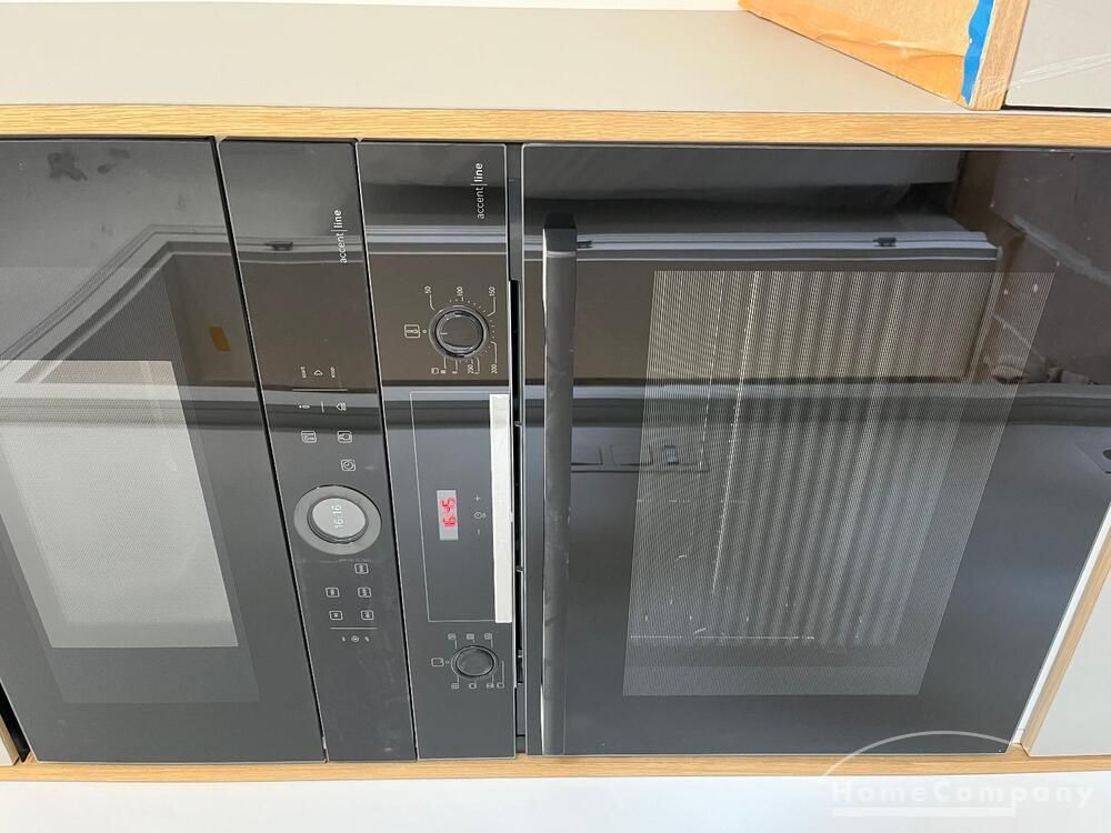 Komplett neue, individuelle Einbauküche mit Ofen, Mikrowelle Induktionsherd, Kühl/Gecfrierkombination, Spülmaschine & Kombigerät zum Waschen und Trocknen.