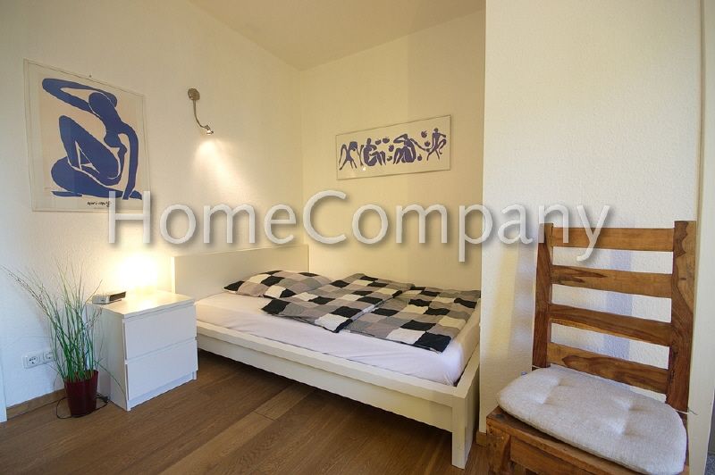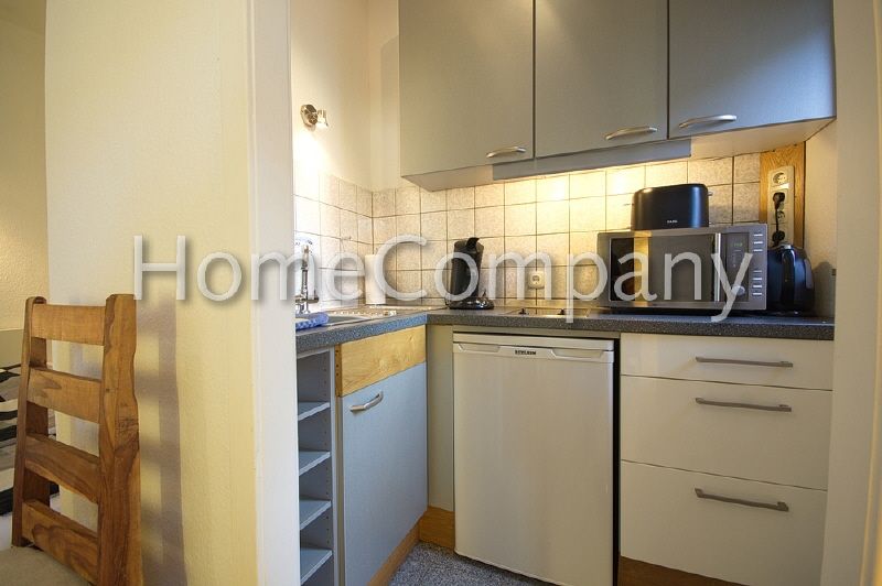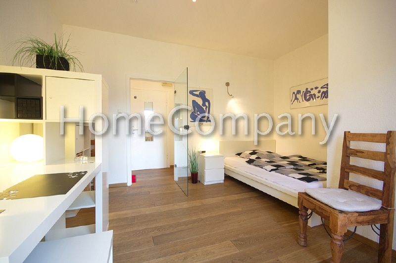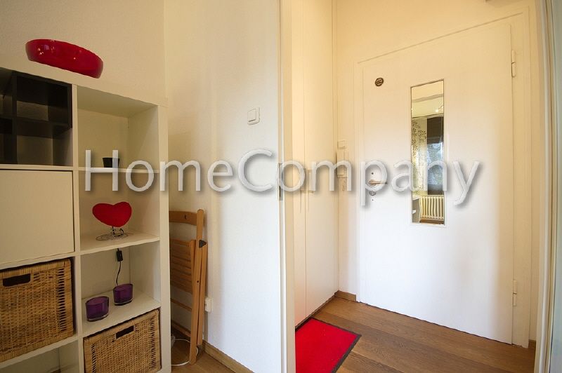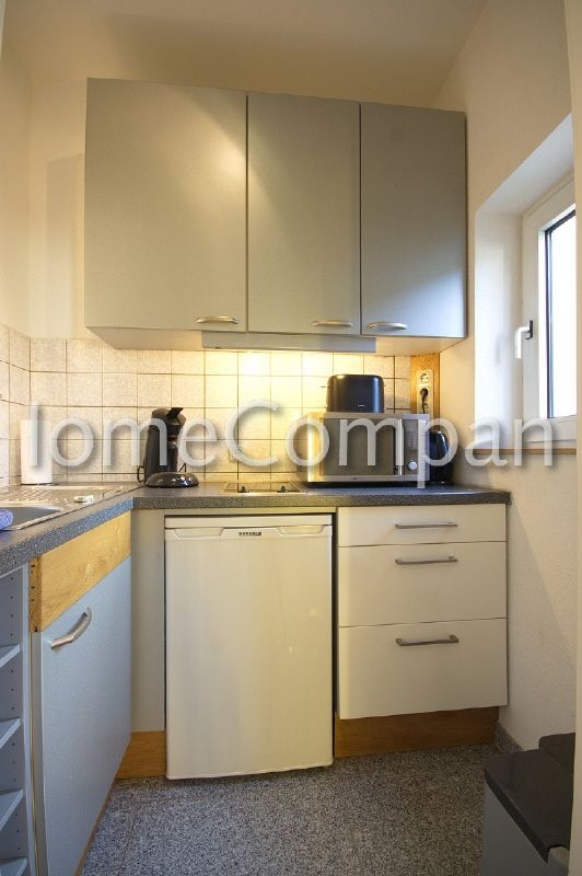 The apartment is fully fitted and furnished. The living/dining room features a bed (1.40m wide), a desk, shelving, flat-screen TV plus a stereo system. The compact kitchen offers a double ceramic hob, sink, fridge with freezer compartment plus tableware, cutlery and pans etc. The bathroom features a shower, WC and washbasin. A spacious wardrobe can be found in the hall. You can also have use of an internet connection for €20 per month. A washing machine and dryer can be found in the building’s cellar.