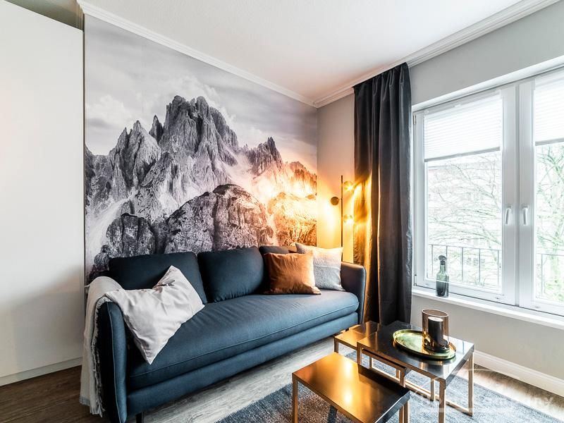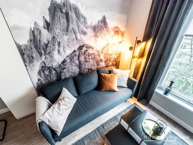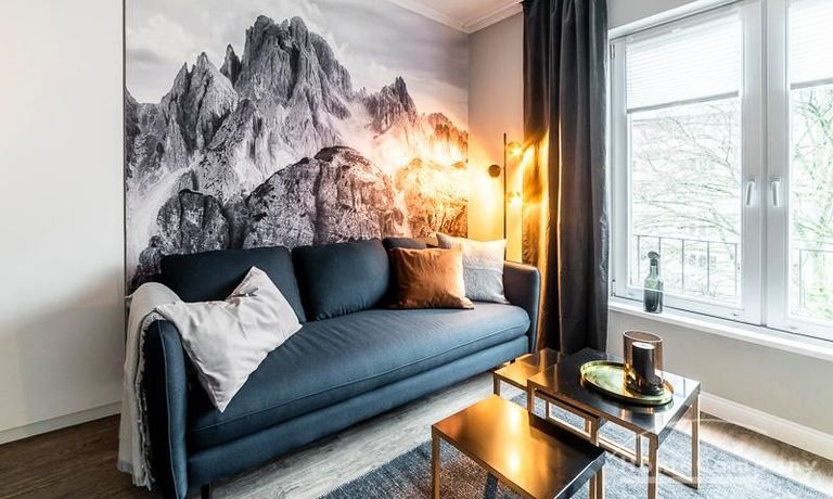 Ein besonderes Highlight ist das einzigartige Wandbild, das dem Apartment Charakter verleiht und den Wohnbereich hervorhebt.