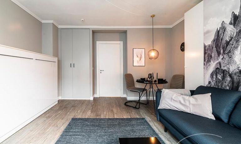 Klare Linien, Eleganz und aufgeräumte Gemütlichkeit machen dieses Apartment zu einem perfekten Businessapartment,