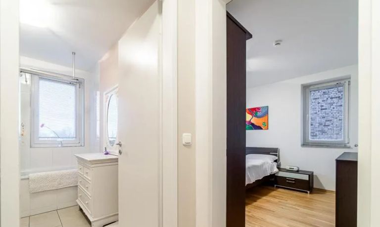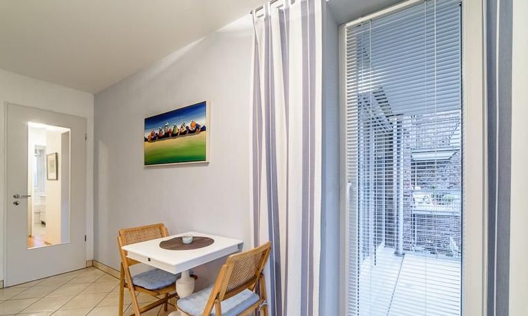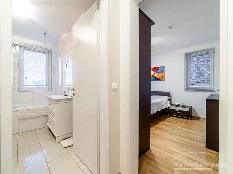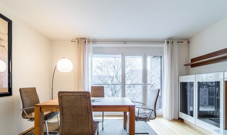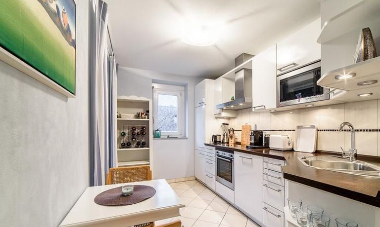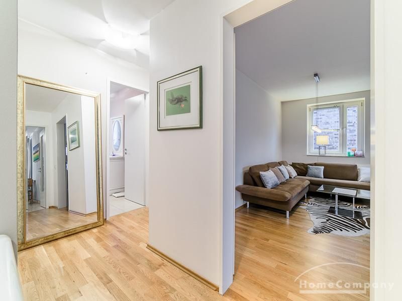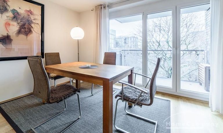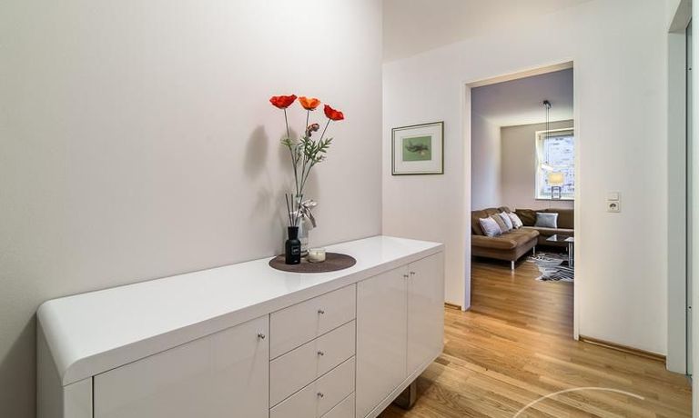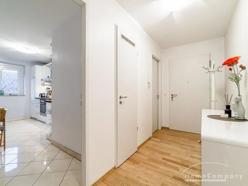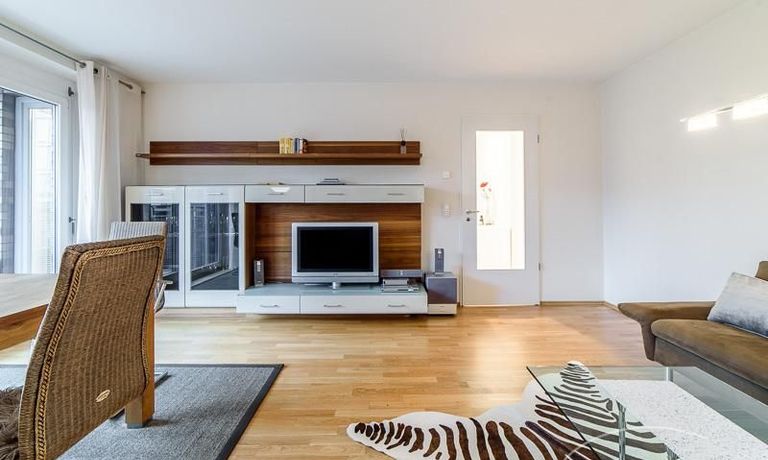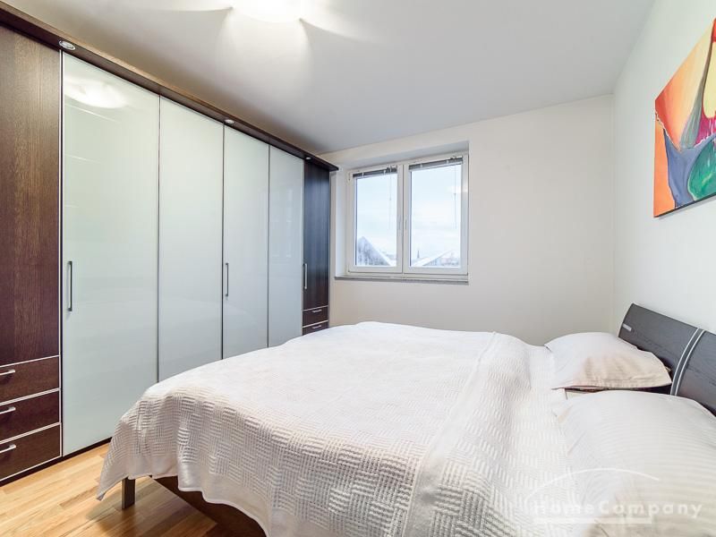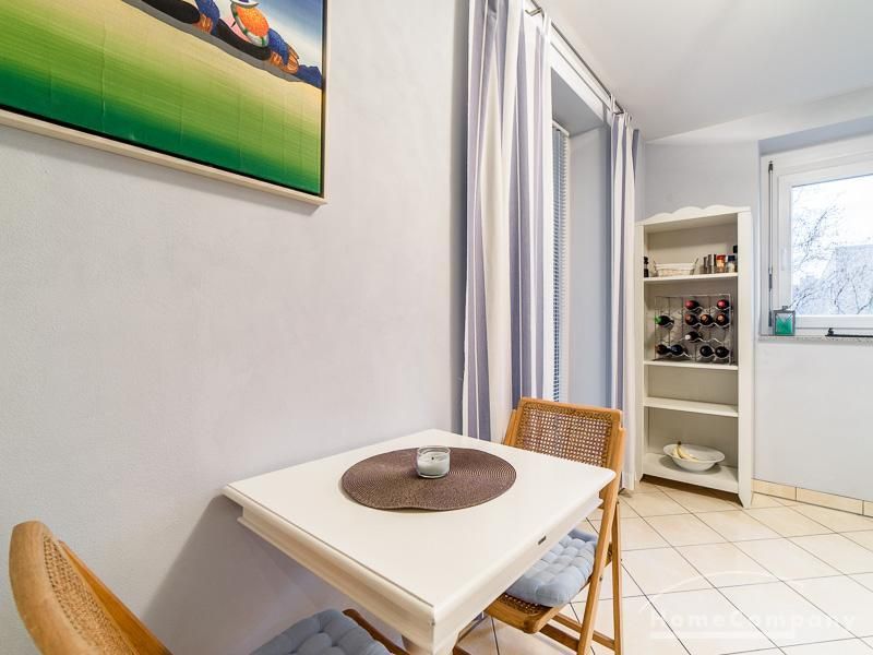 Sehr sorgfältig eingerichtete Wohnung in einer gepflegten Wohnanlage. Das in der Wohnung verlegte Parkett sorgt für eine angenehme ruhige Atmosphäre. Der vom Wohnzimmer und von der Küche aus begehbare Balkon bietet einen wunderschönen Blick direkt in eine Baumkrone. Im Wohnzimmer befindet sich ein gemütlicher Sofabereich und ein schöner Holz-Esstisch, der Platz für 4 Personen bietet. Das Master-Schlafzimmer ist mit einem komfortablen 1,80 m breiten Doppelbett und einem großen Schwebetürenschrank ausgestattet. Das 2. Schlafzimmer ist mit einem 1 m Bett, einem Schrank und einem kleinen Schreibtisch eingerichtet. Zur Wohnung gehört ein SUV-geeigneter Tiefgaragenstellplatz.
