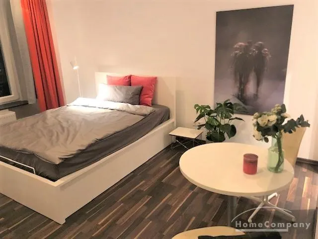 Modern und hochwertig möbliertes, praktisches Businessapartment im 4. OG eines Mehrfamilienhauses in zentraler Lage Nähe Goetheplatz. Vinylfußboden in Holzoptik. Neu saniert.