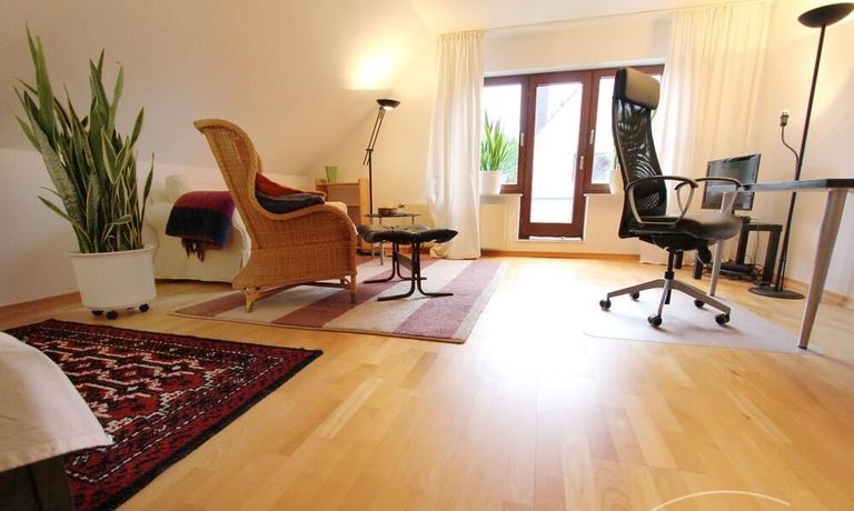 Solide möbliertes 1-Zimmer-Appartement in schöner Wohnlage, schickes Haus. Gut aufgeteilter Wohn-Schlafraum mit Balkon. Separate gemütliche Küche. Gepflegtes Bad mit Dusche mit Fenster und Waschmaschine.