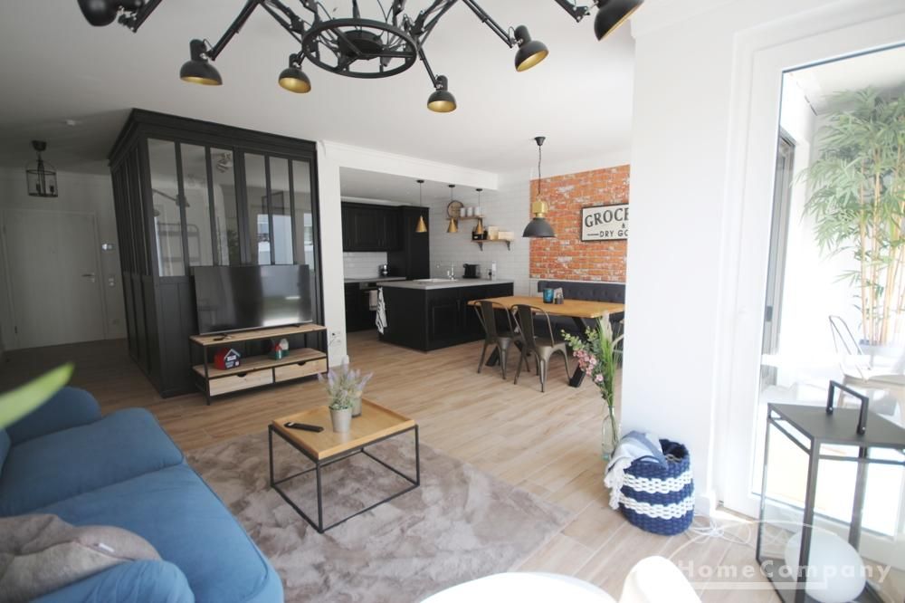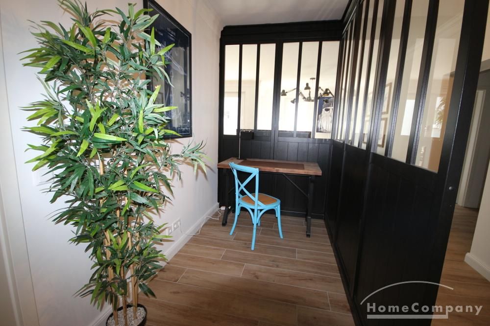 Die schöne eingerichtete Wohnung hat eine Wohnfläche von ca. 81 m² und teilt sich auf in das Wohn-Esszimmer mit moderner Küche mit Kochinsel und Zugang zur Terrasse, ein großes Schlafzimmer mit Doppelbett, eine begehbare Ankleide , ein Büro , ein modernes Bad mit Dusche und ein Waschraum mit Waschmaschine und Trockner.