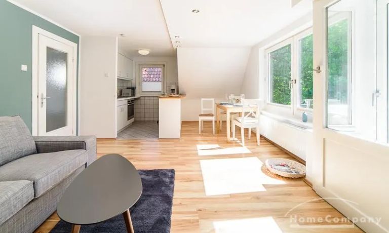 Wohnung in ruhiger, zentraler Lage. Gute Anbindung in die Innenstadt und zum UKE. Die Wohnung verfügt über einen offenen Küchenbereich. Im Wohnzimmer steht ein größerer Esstisch zur Verfügung. Von dort gelangt man über eine Terrassentür auf den ruhig gelegenen Balkon. Das Schlafzimmer verfügt über ein Doppelbett und einen Kleiderschrank. Die Wohnung ist mit einer Minianlage und einem großen Smart-TV (101 cm Bildschirmdiagonale) ausgestattet. Das Wannenbad ist in hellen Farbtönen gehalten. In einem separaten Waschraum stehen eine Waschmaschine und ein Trockner zur Verfügung. Es ist eine Sat.-Schüssel (Astra 19,5 + HotBird 13) angeschlossen, mit der ca 850 Programme empfangen werden können.