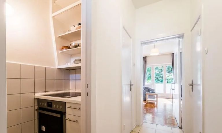 Einfach eingerichtetes Erdgeschoss-Apartment in zentraler Lage. Das Apartment ist u.a. möbliert mit einem Bett (1,85m lang) und einer Couch. Es verfügt über zwei Abstellkammern, von denen eine als begehbarer Kleiderschrank genutzt wird. Die Waschmaschine befindet sich im Nebenhaus.