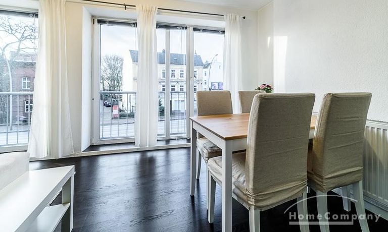 Einfacher Standard. Möblierte 2-Zimmer-Wohnung für 1 Person mit dunklem Parkett sowie bodentiefen Fenstern zur Südseite sowie Waschmaschine, Wäschetrockner, 32″ Smart TV, schnellem Internet (25 MBit) und eine Telefonflatrate für das deutsche Festnetz. Die Wohnung ist zentral im Hamburger Westen nahe zu Ottensen und Altona und zur A7 gelegen. Die Elbe erreicht man in 10 Minuten, bis zur Hamburger Innenstadt sind es ca. 15 Minuten.