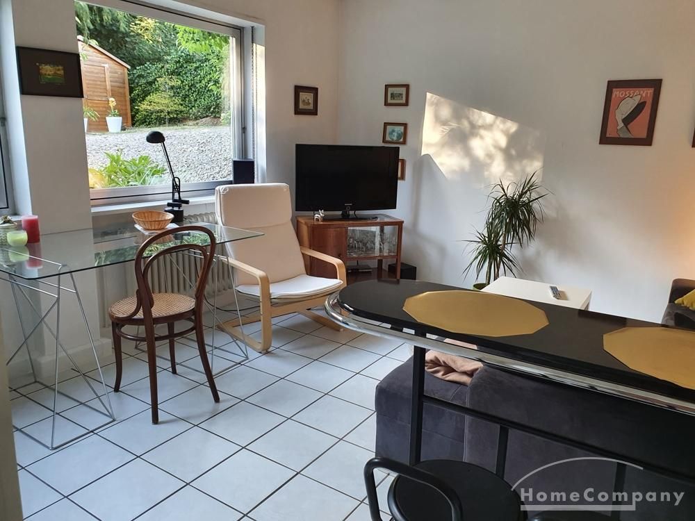 Das ca. 45 m² große Zwei Zimmer Apartment liegt im Souterrain eines Wohnhauses in einem ruhigen Wohngebiet. Über einen separaten Eingang gelangt man über einen kleinen Flur in einen Wohnbereich mit offener Küche. Das Schlafzimmer verfügt über ein großes Bett (1,40 m). Das Bad ist ein Tageslichtbad. Das Apartment hat direkten Zugang zum Garten.