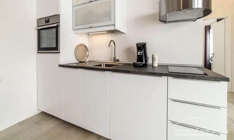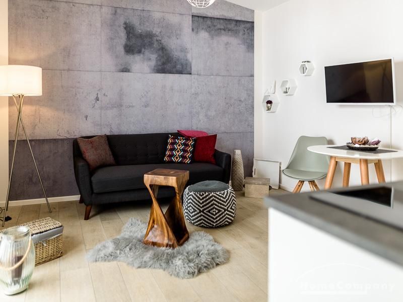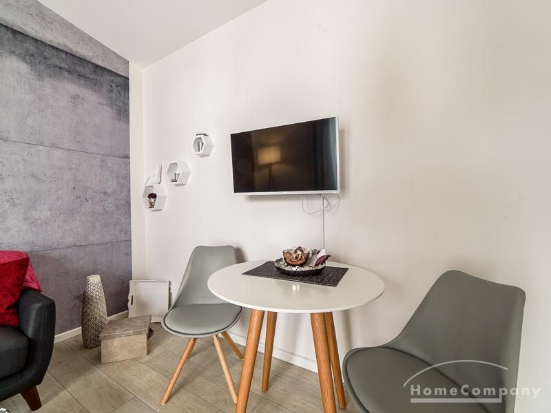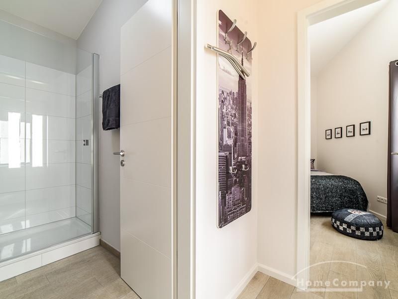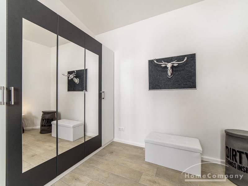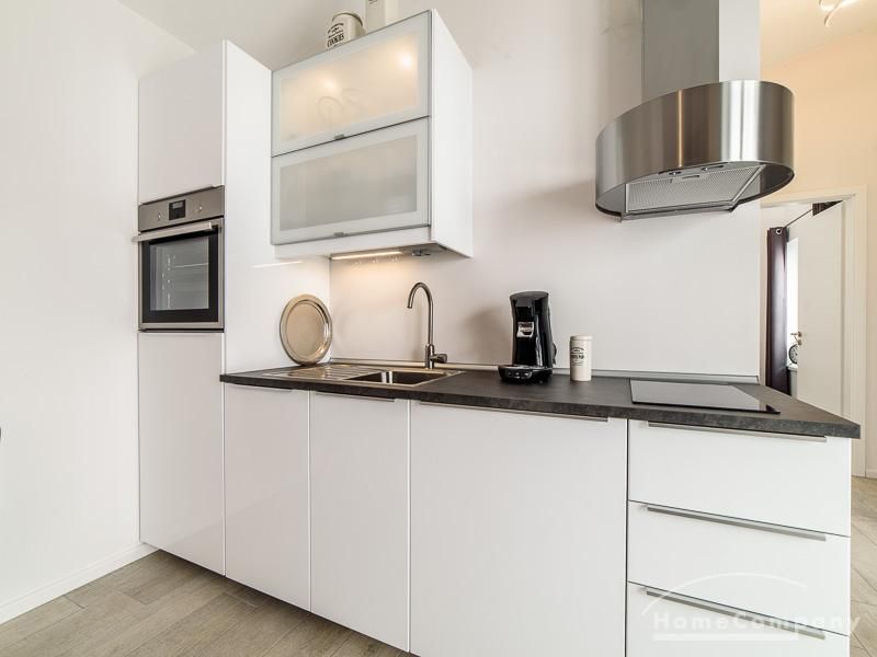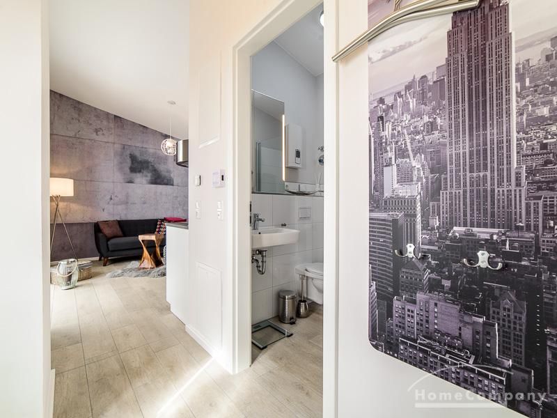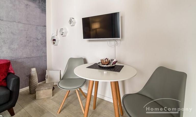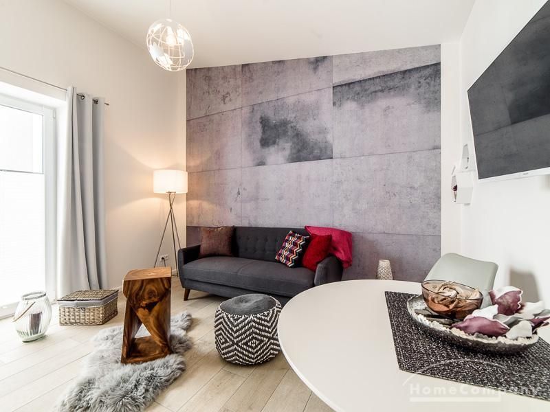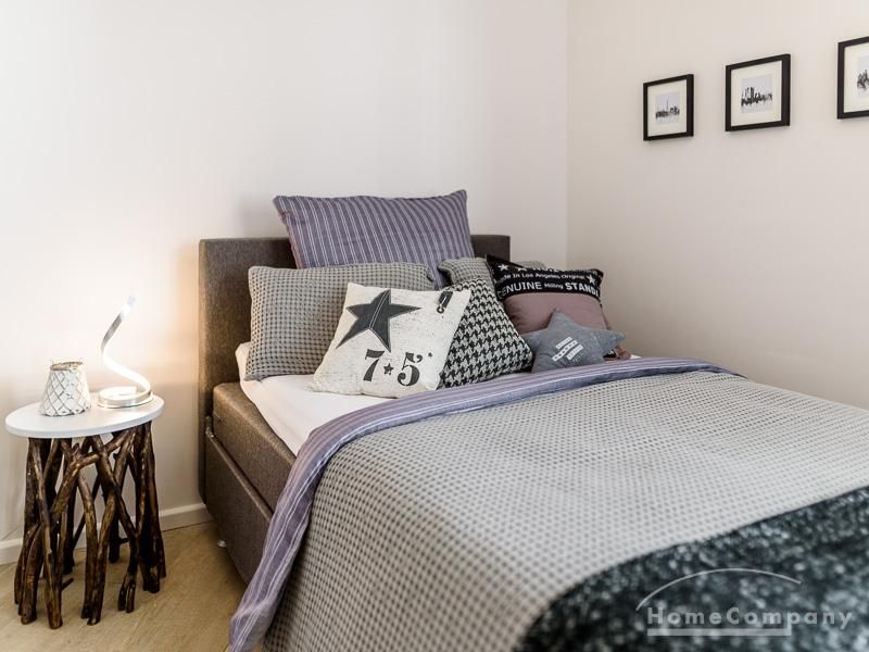 Die Wohnung ist mit Fußbodenheizung ist modern und in harmonischen Farben eingerichtet. Ein gemütliches, dunkelgraues Sofa lädt zum Entspannen ein. Der Design-Beistelltisch aus Suar-Holz mit einzigartiger Form ist ein echter Blickfang. Die Wandgestaltung, die hohen, schrägen Decken und sorgsam ausgewählte Accessoires verleihen dem Styling ein zeitgemäßes Business-Ambiente. Weitere Kontrastakzente, wie das silbergraue Lammfell und ein Stoff-Pouf lockern den Gesamtlook auf. Die offene Hochglanzküche ist zusätzlich mit einer Waschmaschine, Geschirrspüler und einer Senseo-Kaffeeautomaten ausgestattet. Das helle Badezimmer mit Fußbodenheizung, großzügiger Dusche, Personenwaage und Haartrockner bietet jeden Komfort. Das Schlafzimmer ist mit einem 1,20 großen Boxspringbett und einem 2,70 großen Kleiderschrank mit weiteren Innenschubladen ausgestattet. Maßangefertigte Plissees, welche in jeder Position von oben und unten einstellbar sind, bieten edlen Sicht- und Sonnenschutz an allen Fenstern und sorgen für sanft abgefiltertes, natürliches Licht im Zimmer. Zusätzliche Vorhänge schaffen auch in den Abendstunden ein angenehmes Ambiente. Die Wohnung hat eine Terrasse und befindet sich im absolut ruhigen Innenhof einer kaum befahrenen Seitenstraße, nur 1,2 km vom Dammtorbahnhof und der Innenstadt entfernt.
