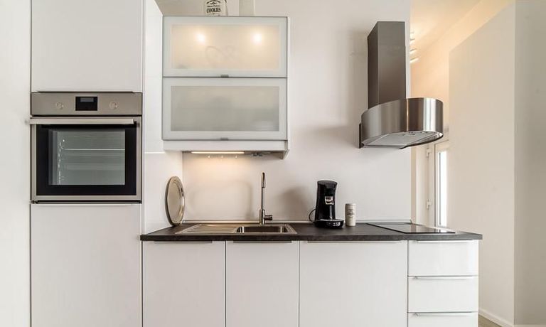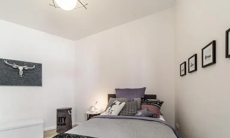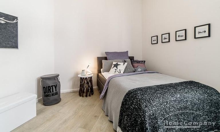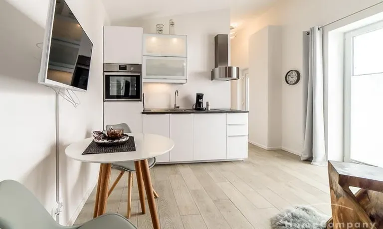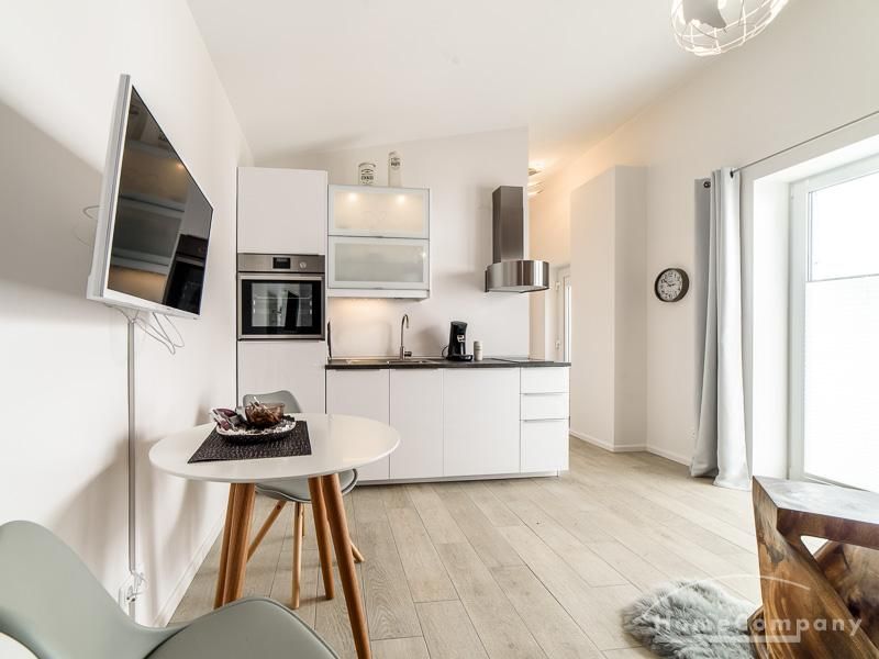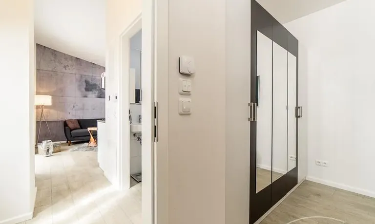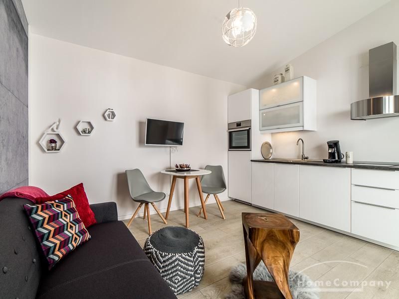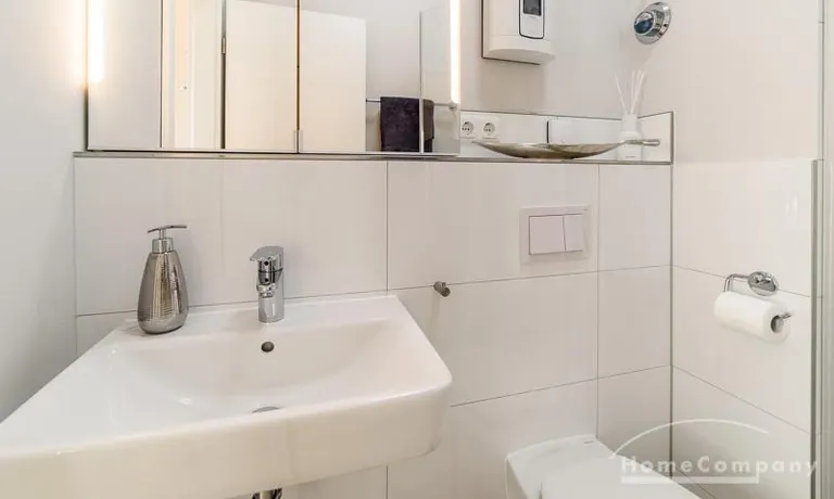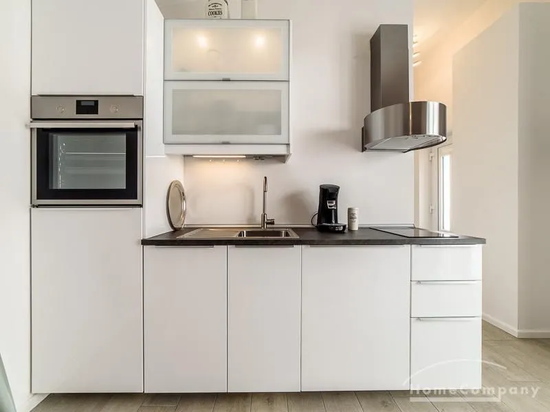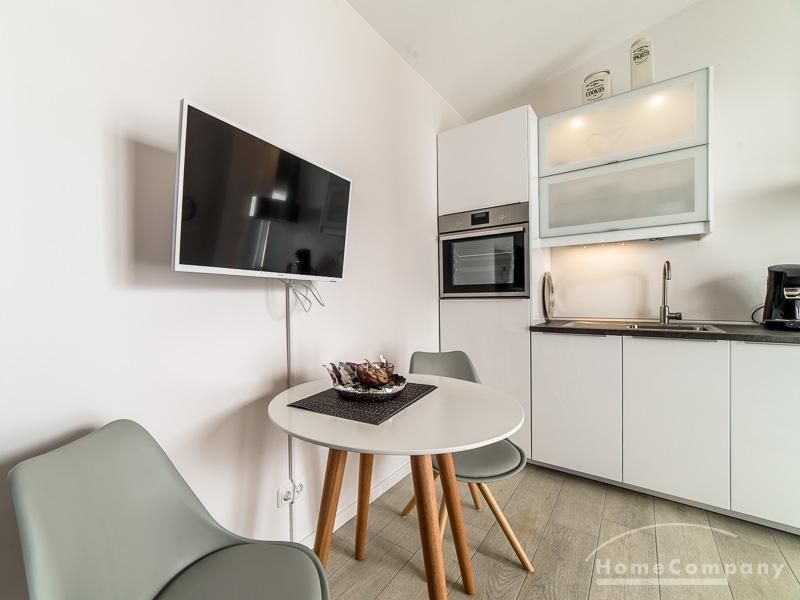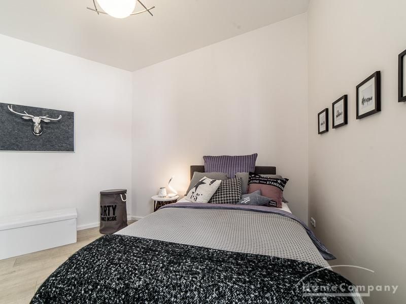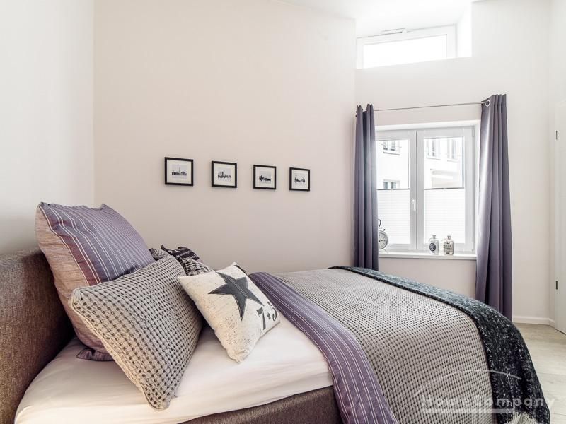 Die Wohnung ist mit Fußbodenheizung ist modern und in harmonischen Farben eingerichtet. Ein gemütliches, dunkelgraues Sofa lädt zum Entspannen ein. Der Design-Beistelltisch aus Suar-Holz mit einzigartiger Form ist ein echter Blickfang. Die Wandgestaltung, die hohen, schrägen Decken und sorgsam ausgewählte Accessoires verleihen dem Styling ein zeitgemäßes Business-Ambiente. Weitere Kontrastakzente, wie das silbergraue Lammfell und ein Stoff-Pouf lockern den Gesamtlook auf. Die offene Hochglanzküche ist zusätzlich mit einer Waschmaschine, Geschirrspüler und einer Senseo-Kaffeeautomaten ausgestattet. Das helle Badezimmer mit Fußbodenheizung, großzügiger Dusche, Personenwaage und Haartrockner bietet jeden Komfort. Das Schlafzimmer ist mit einem 1,20 großen Boxspringbett und einem 2,70 großen Kleiderschrank mit weiteren Innenschubladen ausgestattet. Maßangefertigte Plissees, welche in jeder Position von oben und unten einstellbar sind, bieten edlen Sicht- und Sonnenschutz an allen Fenstern und sorgen für sanft abgefiltertes, natürliches Licht im Zimmer. Zusätzliche Vorhänge schaffen auch in den Abendstunden ein angenehmes Ambiente. Die Wohnung hat eine Terrasse und befindet sich im absolut ruhigen Innenhof einer kaum befahrenen Seitenstraße, nur 1,2 km vom Dammtorbahnhof und der Innenstadt entfernt.
