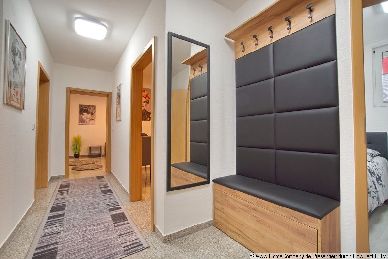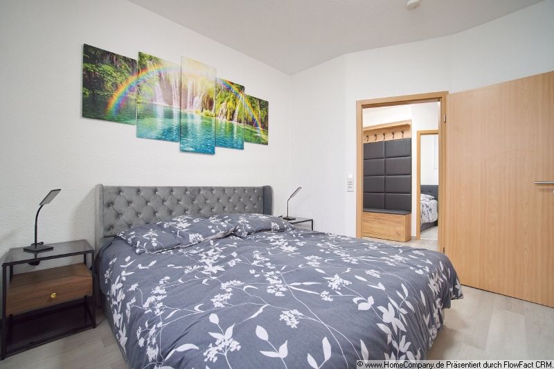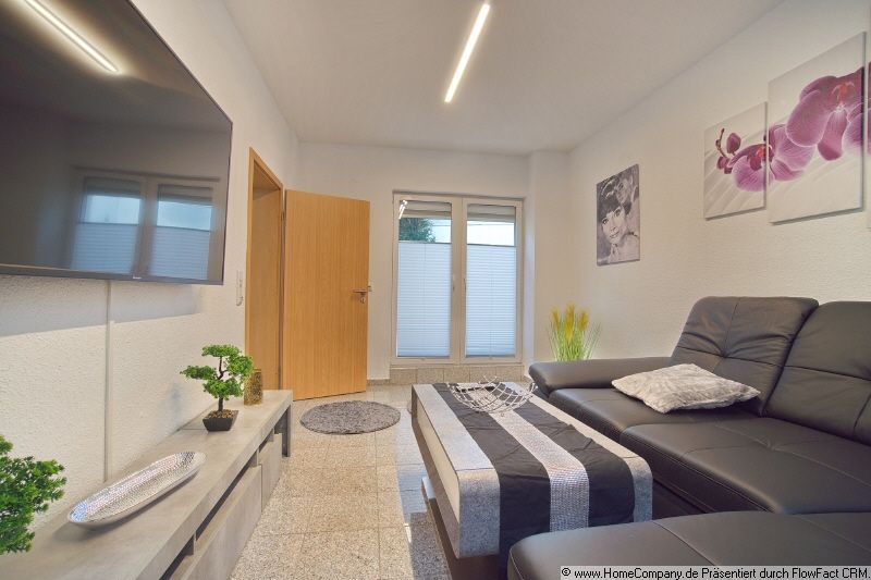 Die Wohnung ist komplett neu möbliert und eingerichtet. Das Wohnzimmer verfügt über eine Couch mit Sideboard, einem Fernseher (Flachbild-TV mit Smart Funktion und 65 Zoll) mit Kabelanschluss und Zugang zur Terrasse. Die Küche ist verfügt u.a. über eine Spülmaschine, Kühlschrank, Gefrierschrank, Mikrowelle, Herd mit Dunstabzug u.v.m. Das Badezimmer ähnelt einer Wellness Oase mit einer Eckbadewanne mit Whirlpool, Dusche, Wasser-Rückenmassage, Dampfsauna mit Radio und Lichttherapie. Ebenfalls ist eine Waschmaschine (Waschtrockner) im Badezimmer vorhanden. Das Schlafzimmer beeinhaltet ein großes Bett (1,80 x 2,00 Meter) und einem Kleiderschrank und begehbaren Kleiderschrank. Das Gäste- oder Kinderzimmer ist mit einem Bett (1,00 x 2,00 Meter), Schreibtisch und Kleiderschrank möbliert. Eine Internet-Flatrate ist im Mietpreis enthalten. Ebenfalls befindet sich im Gäste und Schlafzimmer jeweils ein Flachbild-TV mit Smart Funktion. Starten Sie hier den 360°-Rundgang: https://tour.feelestate.com/view/fullscreen/id/VZT4W/