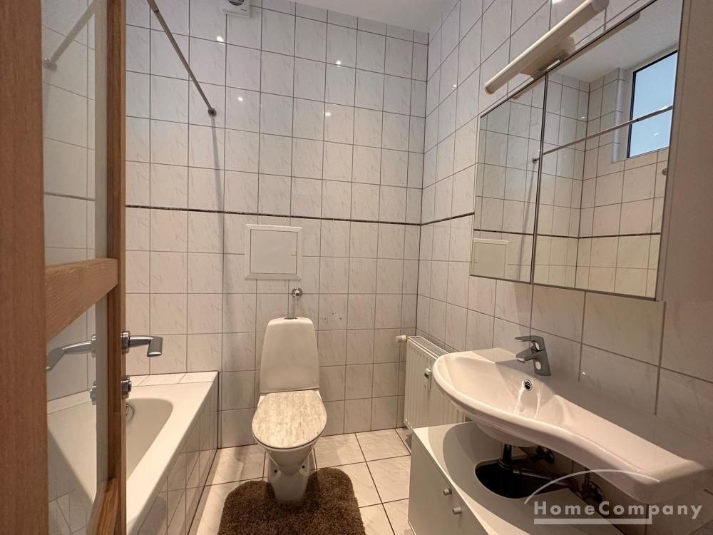 Die Wohnung verfügt über ein Bad mit Badewanne, Waschbecken und WC. Im Keller steht eine Waschmaschine zur Verfügung.