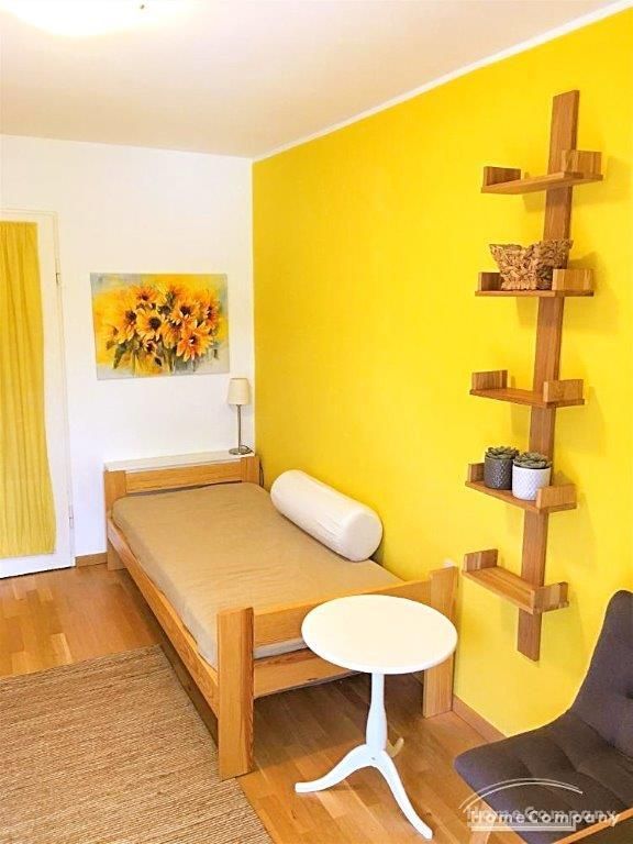 Möbliertes Zimmer mit Balkon in einem 4-Parteien-Haus.