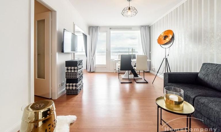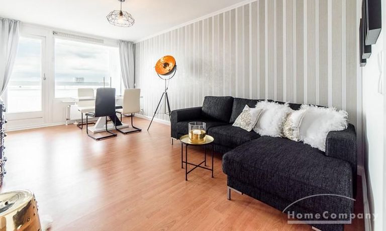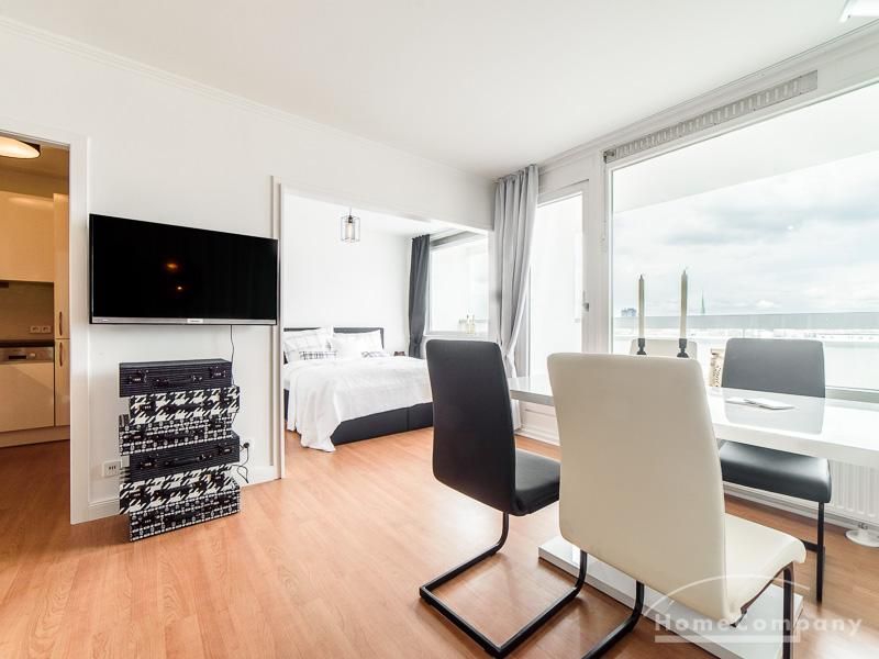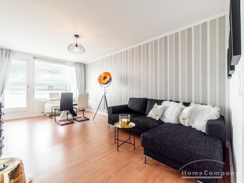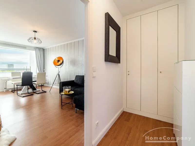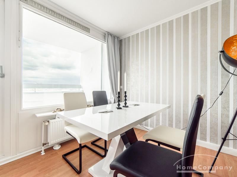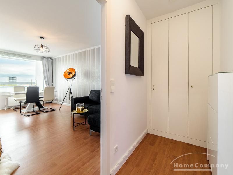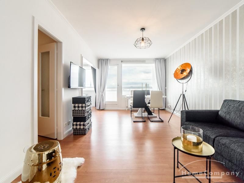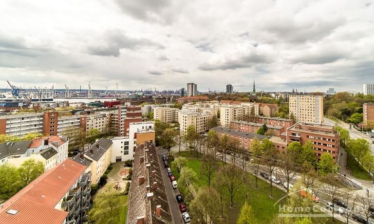 Die freundlich eingerichtete Wohnung in der 14. Etage besticht durch ihren grandiosen Ausblick über die Hansestadt bis zu Elbe, Speicherstadt und Hafen. Der ruhige Ostbalkon erstreckt sich über die gesamte Wohnungsbreite.