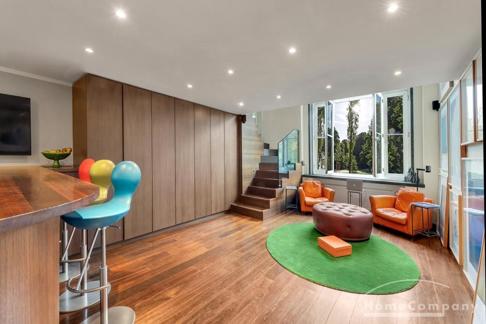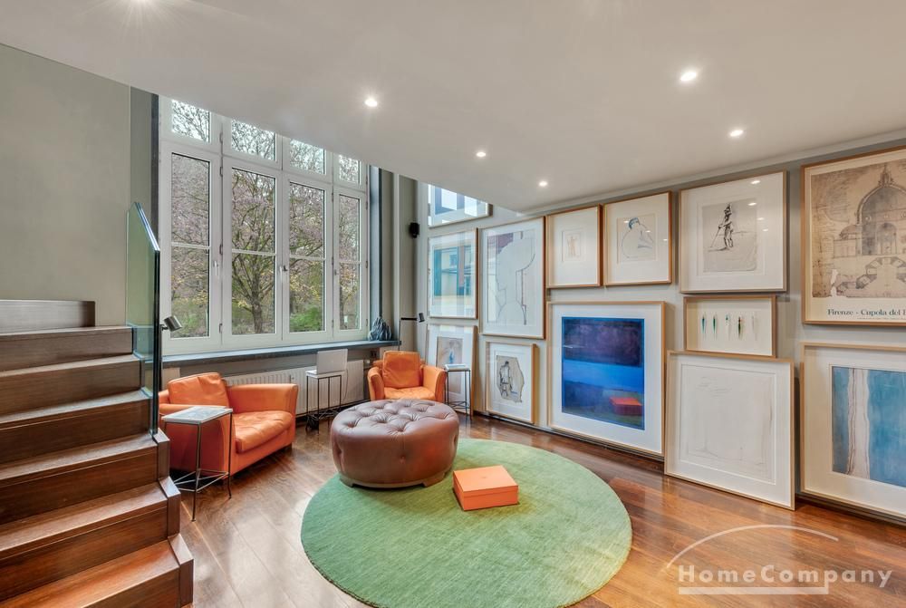 Dieses luxuriös möblierte Apartment erstreckt sich über zwei Etagen und verbindet stilvolles Wohnen mit direkter Nähe zu Münchens grüner Oase, dem Englischen Garten. Genießen Sie lichtdurchflutete Räume dank der großen Atelierfenster mit Blick ins Grüne.