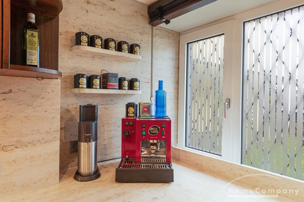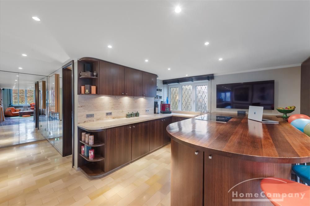 – Küche: eine hochwertige Einbauküche mit Kochinsel und Hochstühlen lädt zum Kochen und Verweilen ein.