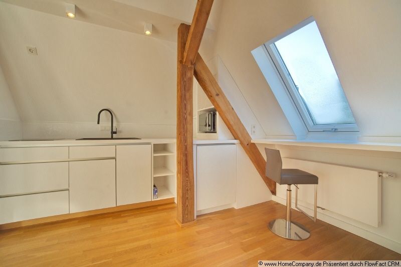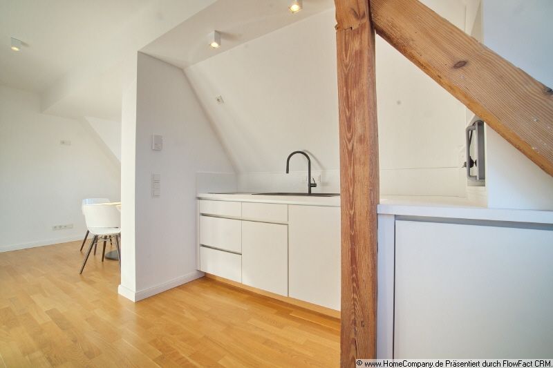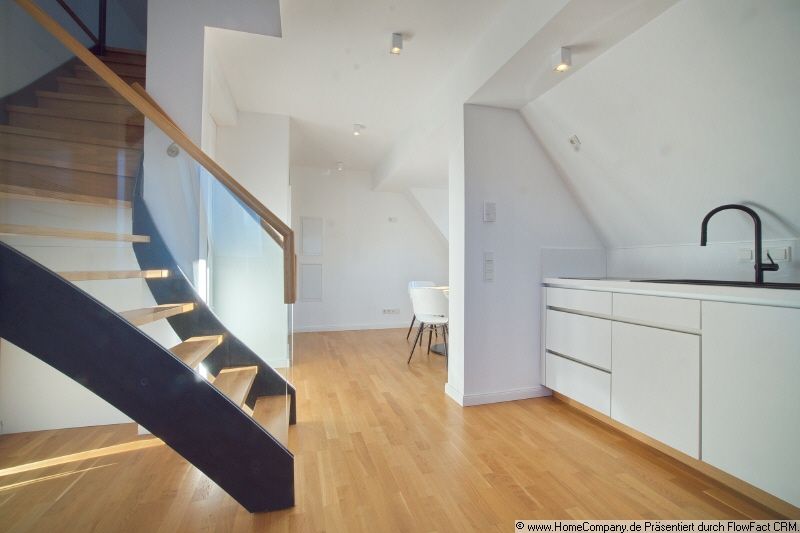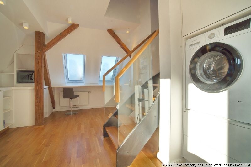 Diese stilvolle Maisonette-Wohnung besticht durch ihre hochwertige Ausstattung und durchdachte Raumaufteilung. Der offene Küchen- und Essbereich im Erdgeschoss ist vollständig möbliert und beeindruckt durch seine minimalistische, weiße Einbauküche. Die Küche ist mit modernen Geräten ausgestattet, darunter ein Backofen, ein Ceranfeld, eine Spülmaschine, ein Kühlschrank mit Gefrierfach und weitere praktische Features, die keine Wünsche offenlassen. Ein maßgefertigter Schrank mit zusätzlichem Stauraum und einer integrierten Waschmaschine sorgt für eine clevere Raumnutzung. Im Essbereich finden Sie einen großzügigen Esstisch mit vier Stühlen. Große Fensterflächen lassen viel Tageslicht herein und sorgen für eine helle und freundliche Atmosphäre. Auf der unteren Ebene befindet sich zudem ein modernes WC. Die gesamte Wohnung ist mit hochwertigem Eichenparkett ausgestattet, das für ein warmes und elegantes Ambiente sorgt. Eine Treppe führt in die obere Etage, die durch ihren vielseitigen Charakter überzeugt. Das Schlafzimmer bietet mit einem 1,80 m breiten Bett und einem maßgefertigten Sideboard viel Komfort und Stauraum. Das angrenzende Badezimmer verfügt über eine moderne Dusche. Ein weiteres Highlight der Wohnung sind die elektrischen Rollos. Die Kombination aus maßgefertigter Möblierung, hochwertigen Materialien und durchdachter Gestaltung macht diese Wohnung zu einem besonderen Wohnraum, der stilvolles und komfortables Wohnen garantiert. Nach Absprache können weitere Möbel zur Verfügung gestellt werden. Internet ist nach Absprache möglich.