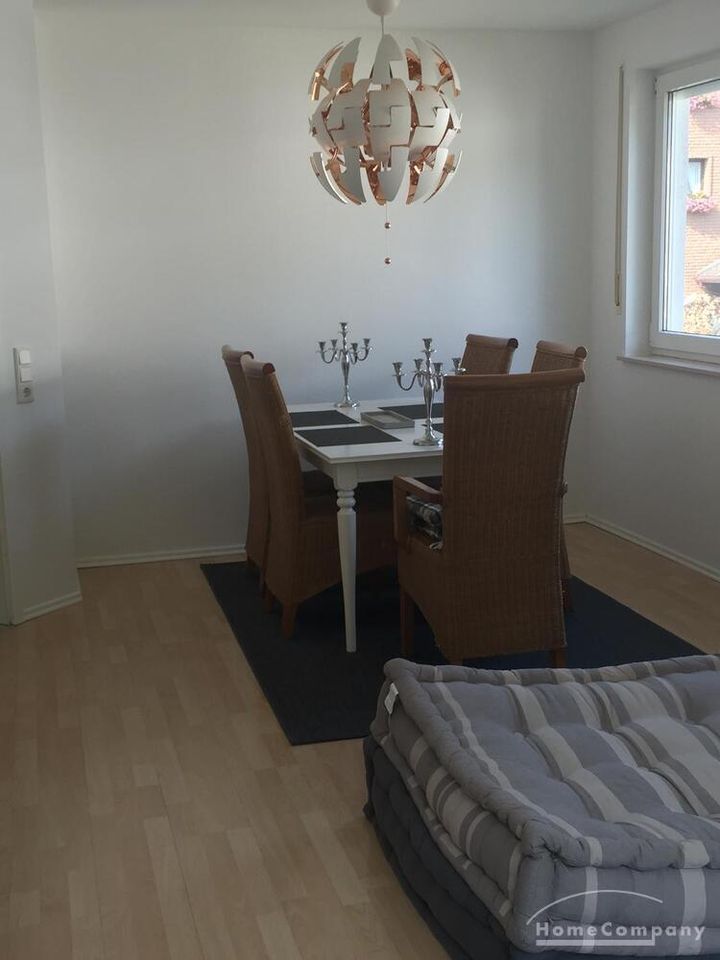 Liebevoll möblierte Wohnung im 1. Obergeschoss in einem 4-Parteienhaus, in einer ruhigen Nebenstraße, mit Blick vom Balkon auf einen Wald.