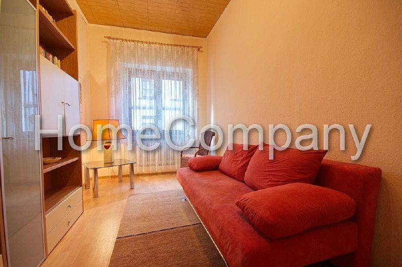 Renovierte Altbauwohnung mit Laminatboden, freundlich gestaltet. Die Wohnung ist komplett möbliert. Wohnzimmer mit Sofa (Schlaffunktion), Regalwand und TV. Schlafzimmer mit Kiefer-Einzelbett, Kleiderschrank und Rattansessel. Neues, weiß gefliestes Duschbad mit Handtuchheizung. Geräumige Wohnküche mit weißen Küchenmöbeln, inklusive allem üblichen Kücheninventar. E-Herd, Backofen, Spüle und Kühlschrank, sowie Esstisch mit vier Stühlen. Ein Internetzugang ist vorhanden.