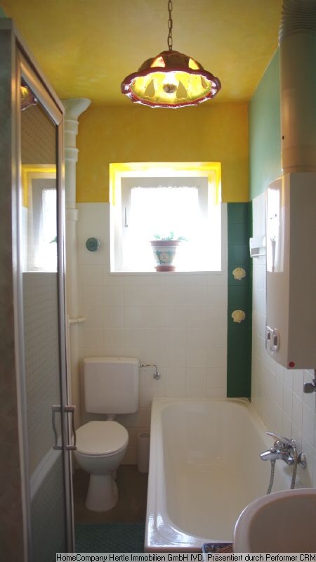 Badschrank, Badewanne, WC, Waschbecken, Badevorleger, Handtücher,