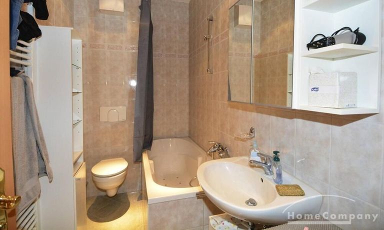 Das geräumige Bad hat eine Badewanne, Handtuchheizkörper und ein wandhängendes WC. Die Einrichtung ist modern und hell im nordischen Stil. Die Küche wurde komplett neu gemacht, geht über 2 Zeilen und verfügt über einen Induktionsherd , Geschirrspüler, Heißluftofen Grill etc. Grundausstattung von Geschirr usw. ist vorhanden.