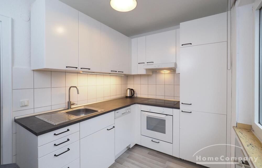 Die Wohnung verfügt über eine voll ausgestattete Küche (Backofen, Spülmaschine, Mikrowelle, Kaffeemaschine, Wasserkocher) mit kleiner erhöhter Sitzecke mit zwei Barhockern.