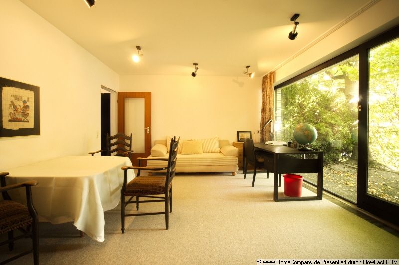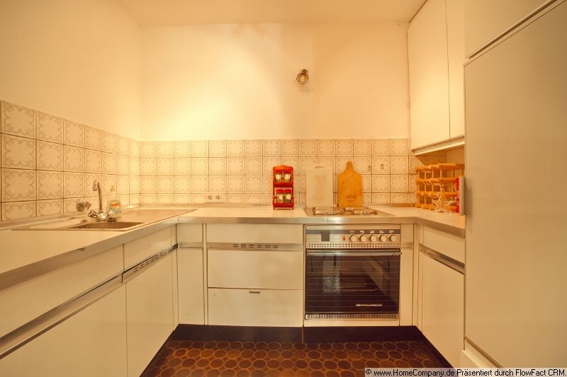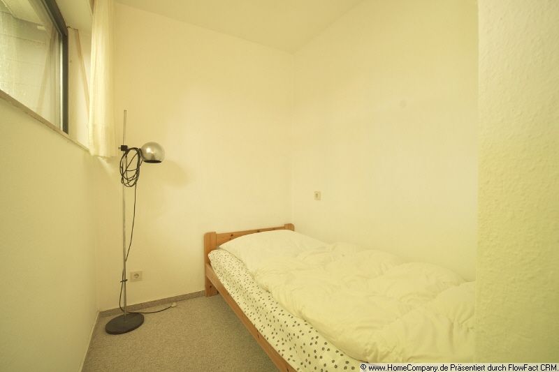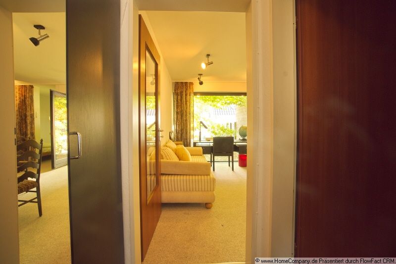 Die Wohnung ist komplett möbliert und eingerichtet. Im Wohnbereich befindet sich eine Couch, ein Esstisch mit drei Stühlen, ein Schreibtisch und einem Einbauschrank. Die offene Küche verfügt u.a. über 4-er Kochfeld, Backofen, Kühlschrank mit Eisfach. Der abgetrennte Schlafbereich ist mit einem 0,90 x 2,00 Meter Bett möbliert. Die grüne Terrasse ist ebenfalls mit Sitzmöbeln ausgestattet. Das Badezimmer verfügt über eine Dusche. In der Diele befindet sich noch ein Kleiderschrank.