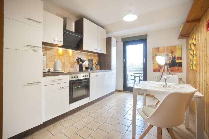 Die Wohnung ist komplett möbliert und ausgestattet. Das Schlafzimmer verfügt über ein 2 x 2 m großes Doppelbett und einen sehr geräumigen Kleiderschrank. Das Bad ist mit WC, Wanne und Waschbecken ausgestattet. Die neue Einbauküche beinhaltet ein Kochfeld mit Dunstabzug und einen Backofen, Kühlschrank sowie alle üblichen Küchenutensilien. Im Wohn- und Esszimmer stehen eine gemütliche Couch mit Tisch und Wohnwand inkl. TV-Gerät sowie ein Esstisch mit zwei Sitzbänken bereit. Im Keller des Hauses befindet sich eine Waschmaschine zur alleinigen Nutzung für den Mieter. In der Wohnung gibt es einen Kabelanschluss, so dass vom Mieter z.B. über Vodafone ein eigener Internetzugang angemeldet werden kann.