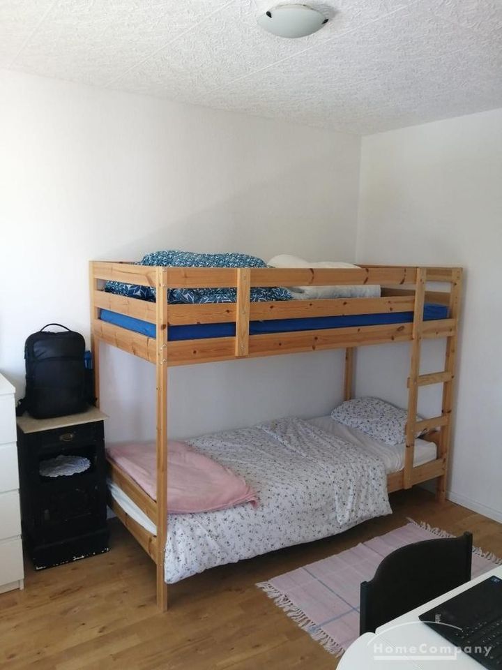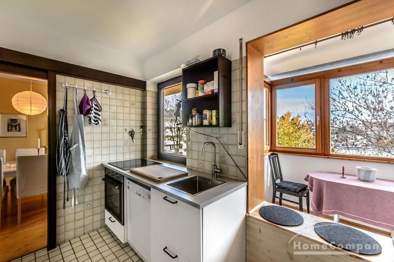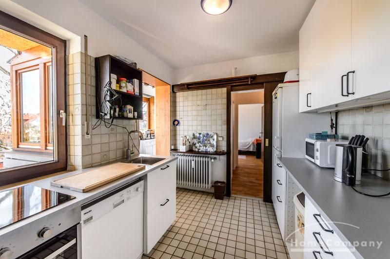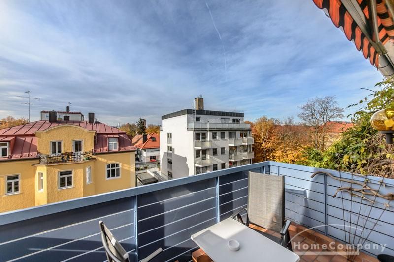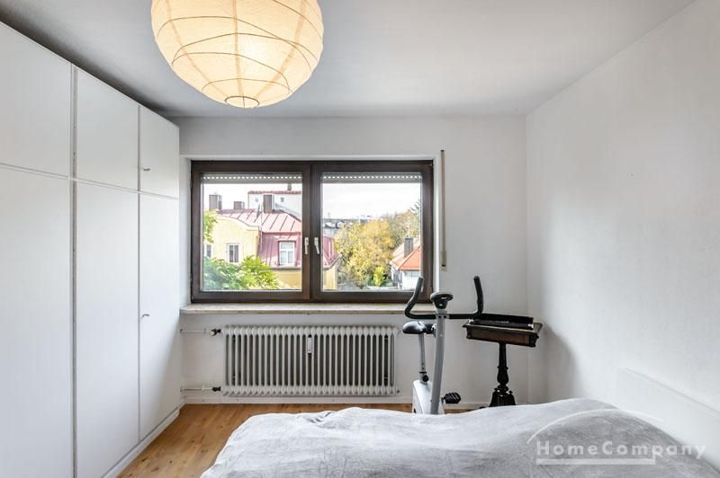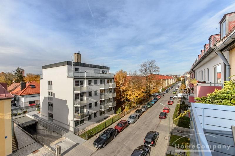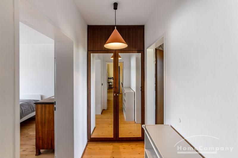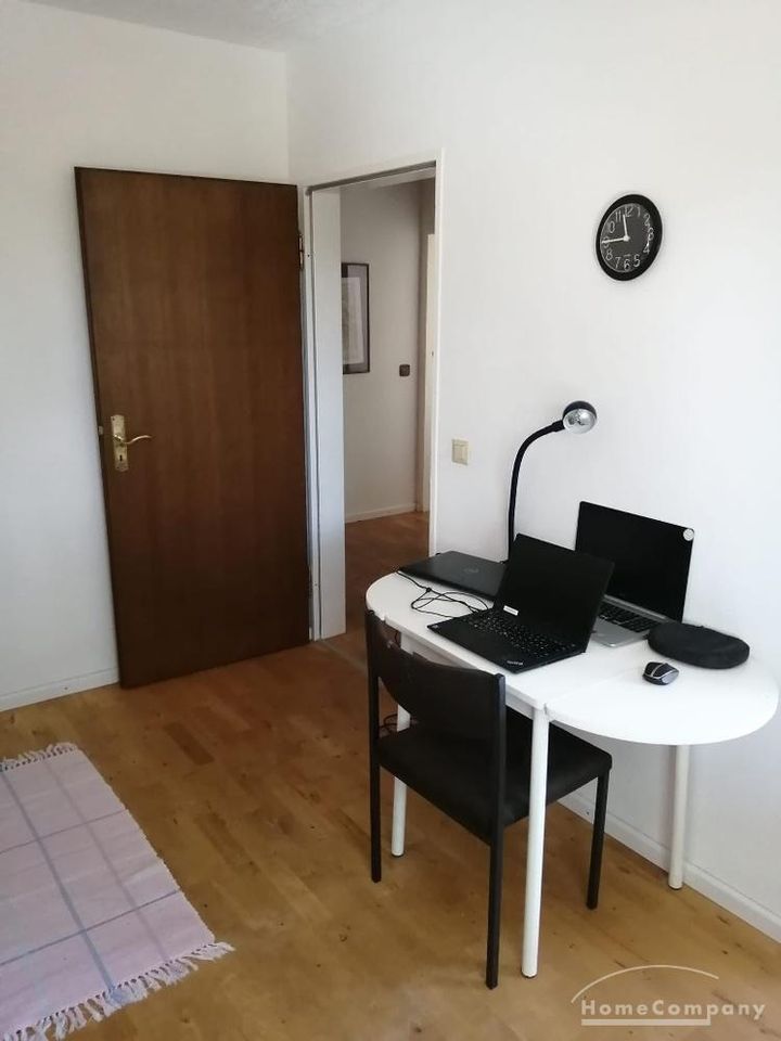 Gepflegte möblierte 3-Zimmer-Wohnung mit Balkon in Milbertshofen. Mehrfamilienhaus mit wenigen Wohneinheiten. 3. Stock mit Lift. Großer heller Wohnraum mit hellem Ecksofa, Sesseln, Sideboards, Kamin und großem Esstisch. Von hier Zugang zum Balkon (mit elektrischer Sonnenmarkise) mit Blick ins Grüne. Das Hauptschlafzimmer ist mit Doppelbett (1,60 x 2m) und großem Kleiderschrank möbliert. Eine zweite Schlafmöglichkeit (Einzelbett) gibt es im zweiten Zimmer. Gut ausgestattete Küche mit Fenster (Spülmaschine, Cerankochfeld, Elektrischer Herd etc.) Das zeitlos geflieste Bad hat eine Dusche, hier steht auch die eigene Waschmaschine.
