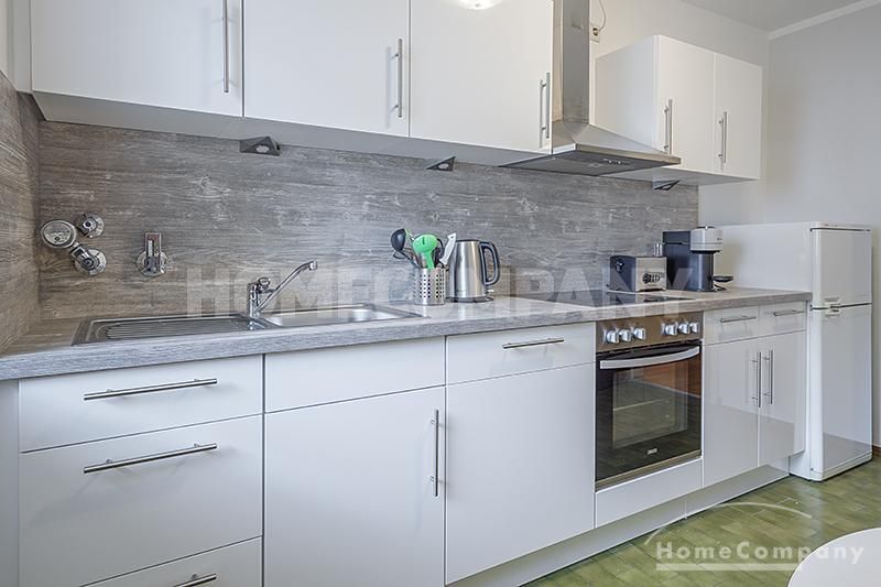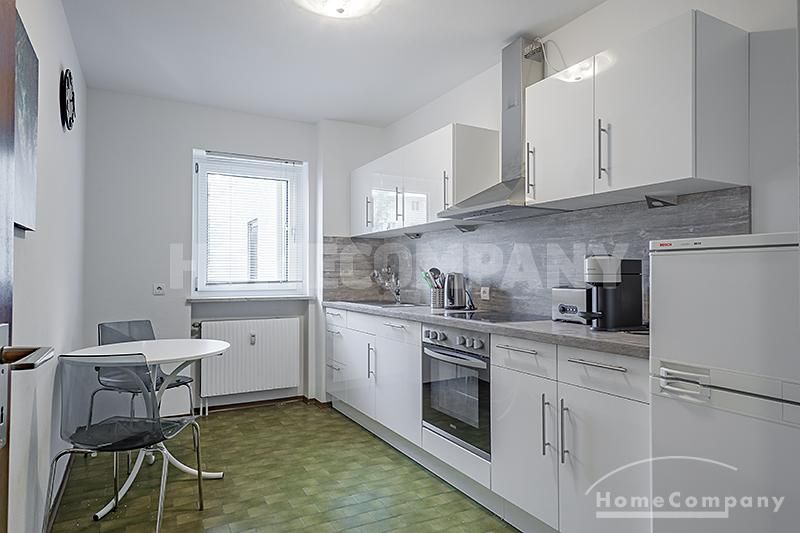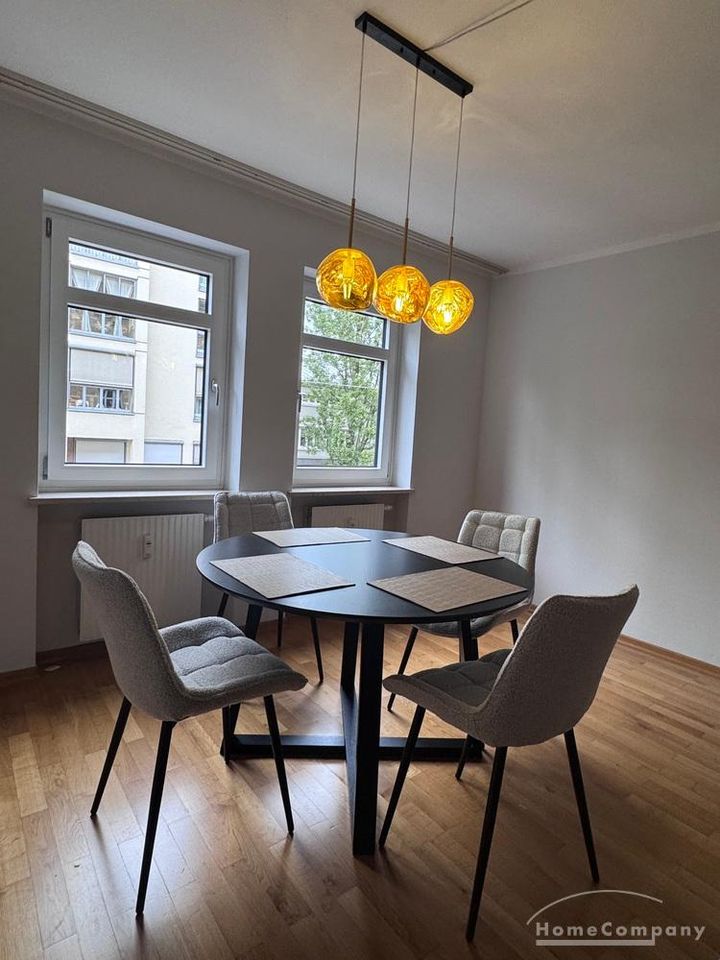 Moderne 3-Zimmer-Wohnung mit großem Balkon in ausgezeichneter Lage in Haidhausen. Nahe Wiener Platz. 2. Stock mit Lift. Die Wohnung verfügt über ein Wohnzimmer mit Esstisch für mindestens 6 Personen und ist mit edlen Sofas und Kommode ausgestattet. Die Küche ist separat, und mit einer großen Kühlschrank mit Gefrierkombination sowie einer Spülmaschine ausgestattet und verfügt ebenfalls über einen kleinem Sitzplatz. Es stehen zwei großzügige Schlafzimmer zur Verfügung: beide mit jeweils einem großen Boxspringbett (1,80 x 2m) und Kleiderschrank. Das Bad ist modern und zeitlos gefliest und hat eine große Glasdusche. Hier steht auch die eigene Waschmaschine. Die Terrasse mit gemütlicher Sitzecke lädt zum verweilen ein. Eine Kammer im Eingangsbereich bietet zusätzlichen Stauraum.