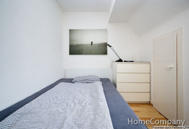 Der Wohnraum bietet ein gemütliches Sofa (zum Schlafsofa ausziehbar) und ein Smart-TV, Internetzugang ist vorhaden. Ein Bistrotisch mit zwei Hockern ist direkt an der Durchreiche zur Kochnische platziert. Der separierte Kochbereich ist mit 3er-Cerankochfeld, Mikrowelle, Kühlschrank, Senseo-Kaffeemaschine, Toaster und einer Grundausstattung an Geschirr und Kochutensilien ausgestattet. Das separate Schlafzimmer verfügt über ein Einzelbett, eine Kommode und einen rollbaren Kleiderständer. In der Dachschräge gibt es weiteren Stauraum für die persönlichen Dinge. Das Bad hat eine Dusche, das WC ist separat. Eine Waschmaschine und ein Trockner im Keller können mitgenutzt werden. Ein Fahrrad kann in der Garage untergestellt werden.