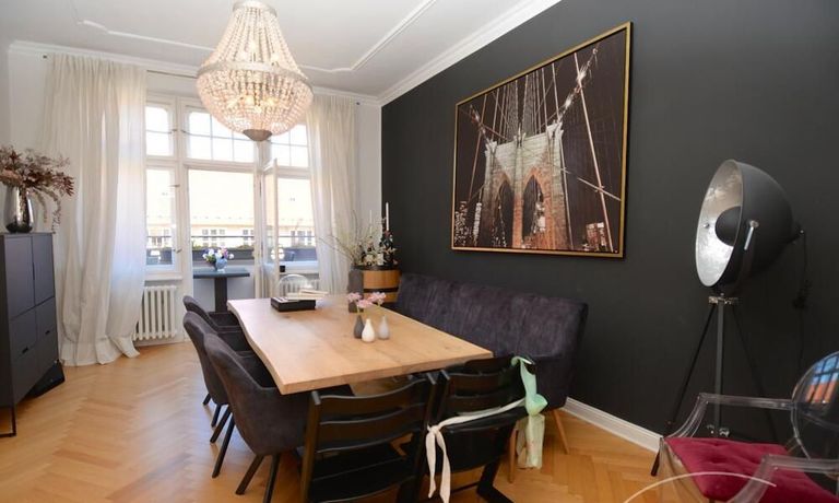 Diese großzügige und stilvoll eingerichtete 4-Zimmer-Wohnung in Berlin-Wilmersdorf überzeugt durch ihre helle Atmosphäre und die unmittelbare Lage am beliebten Volkspark.
