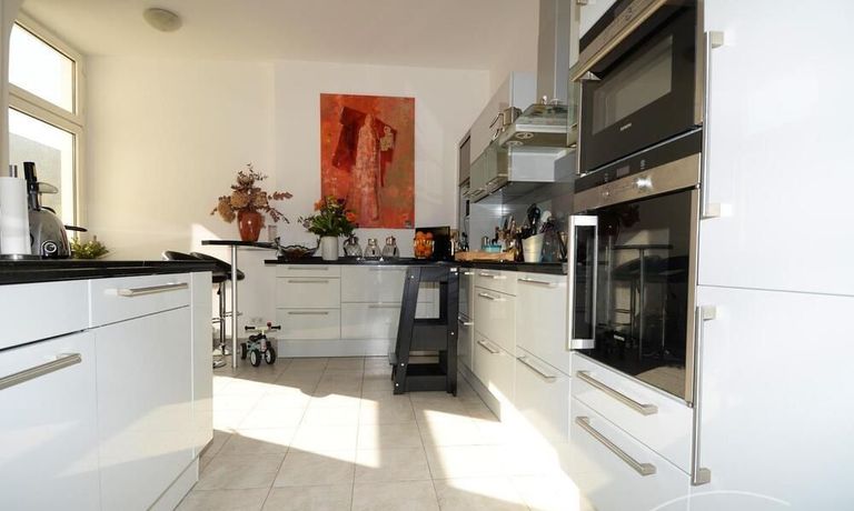 Die gesamte Wohnung ist lichtdurchflutet und geschmackvoll dekoriert, was ein besonders wohnliches Ambiente schafft. Moderne Annehmlichkeiten wie eine Waschmaschine und eine Spülmaschine sind selbstverständlich vorhanden.